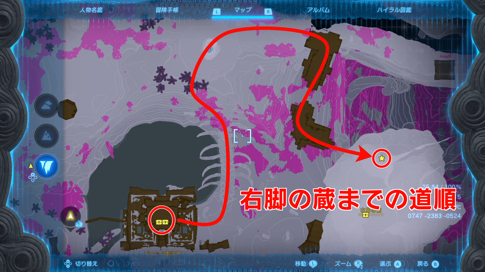 左脚のパーツ取得の攻略チャート