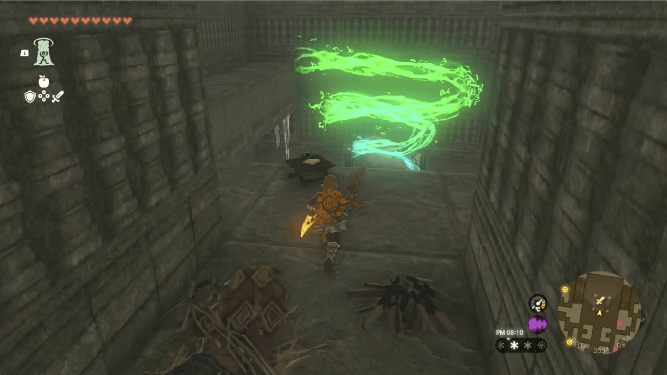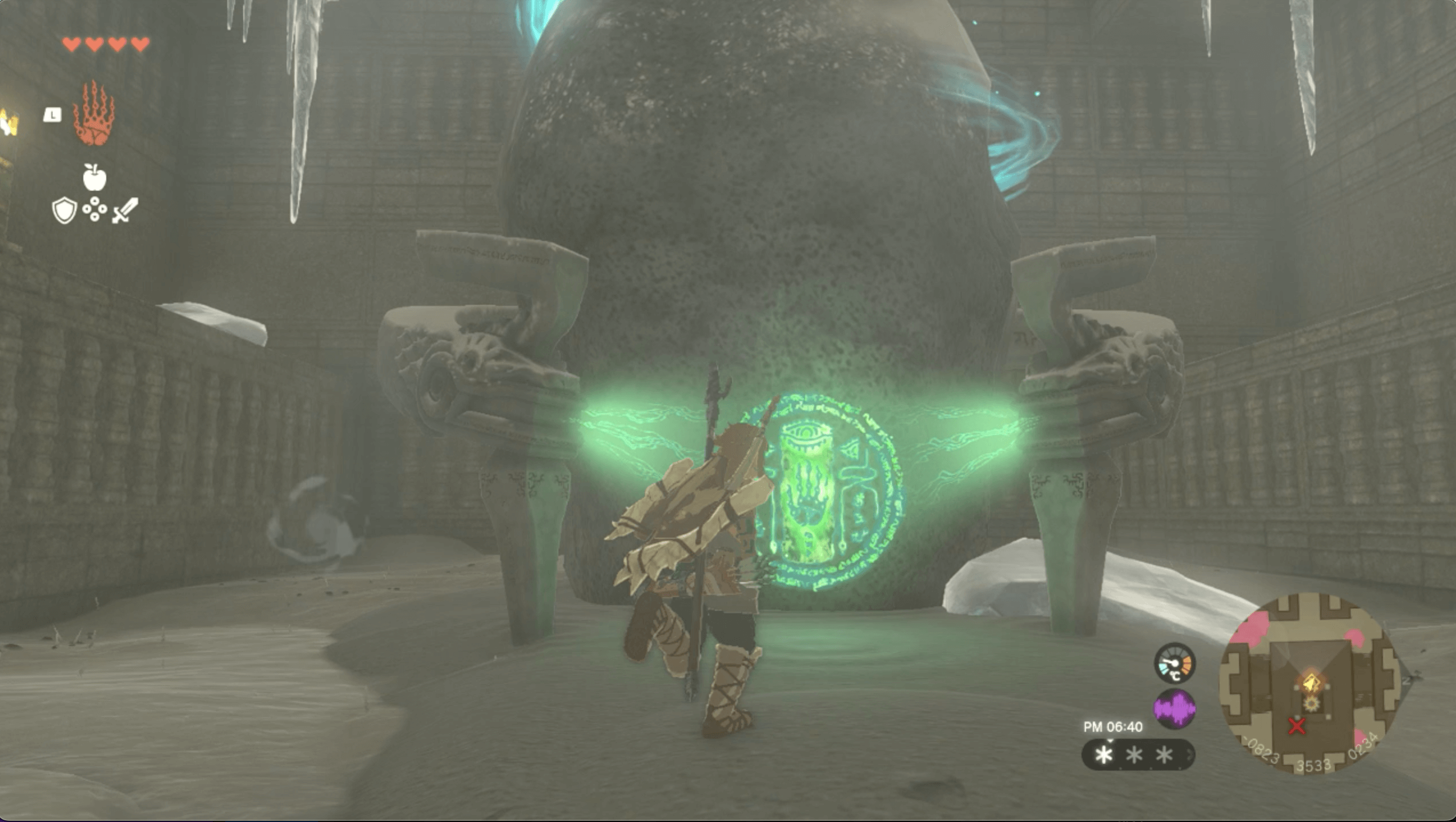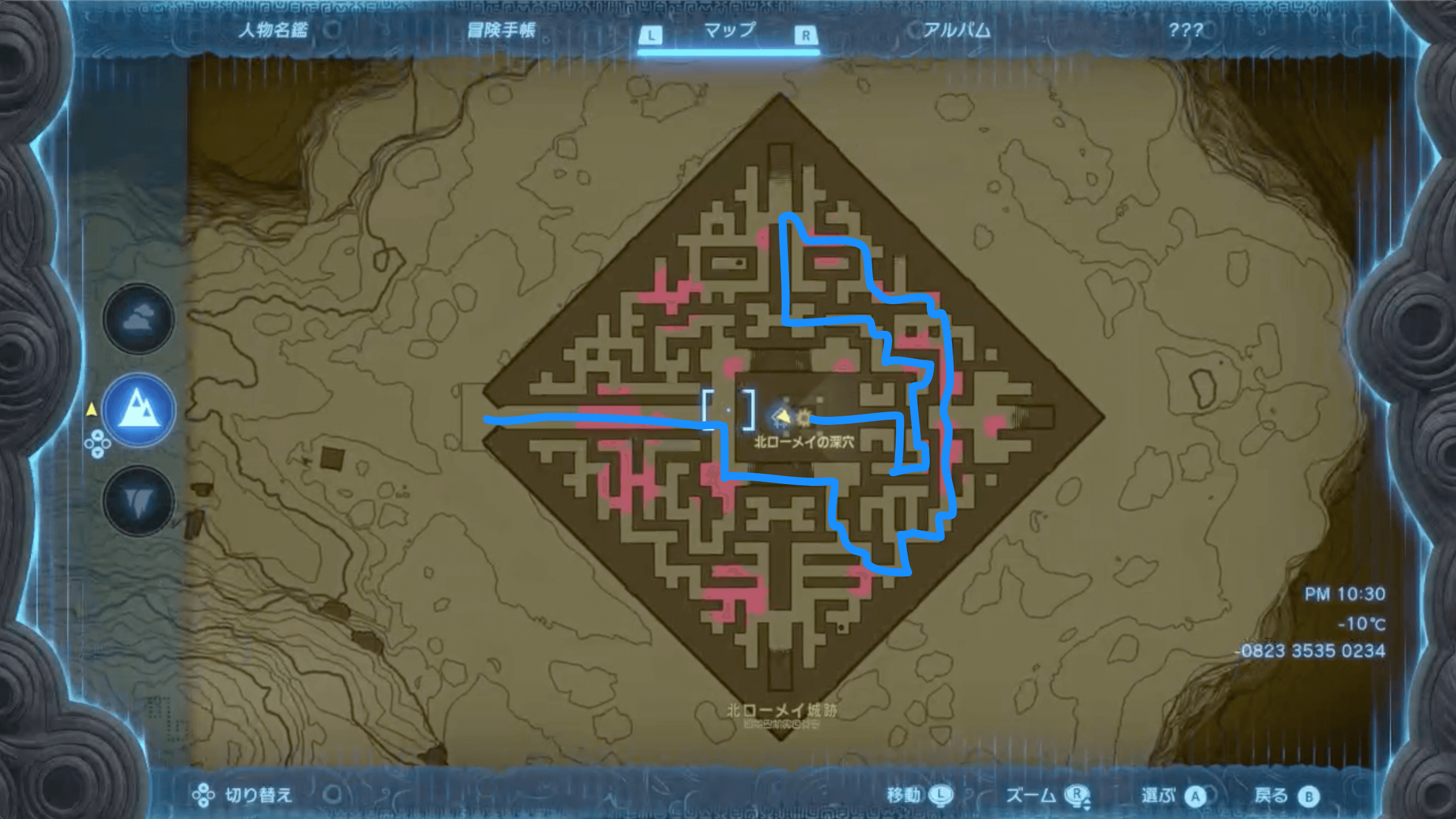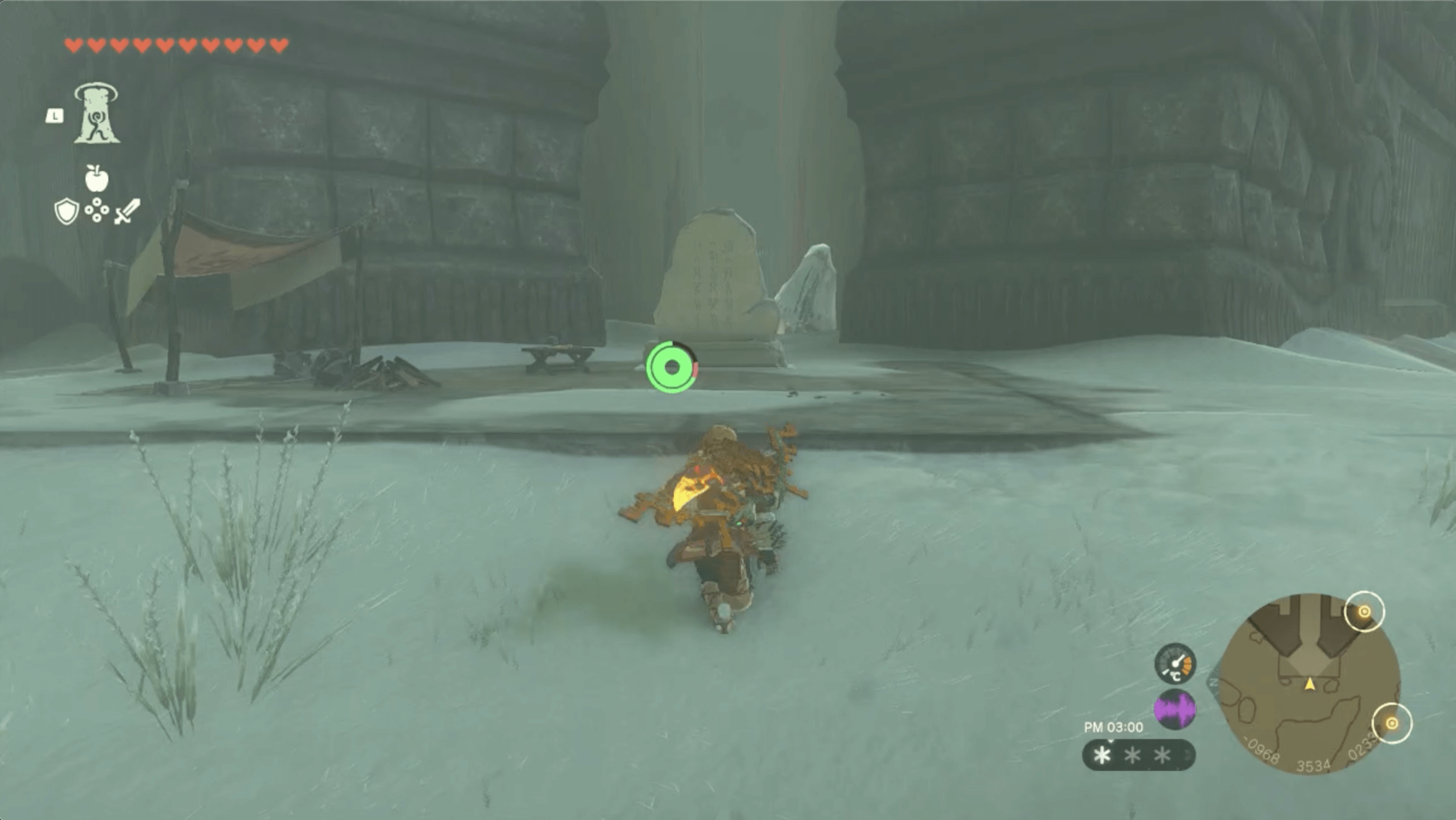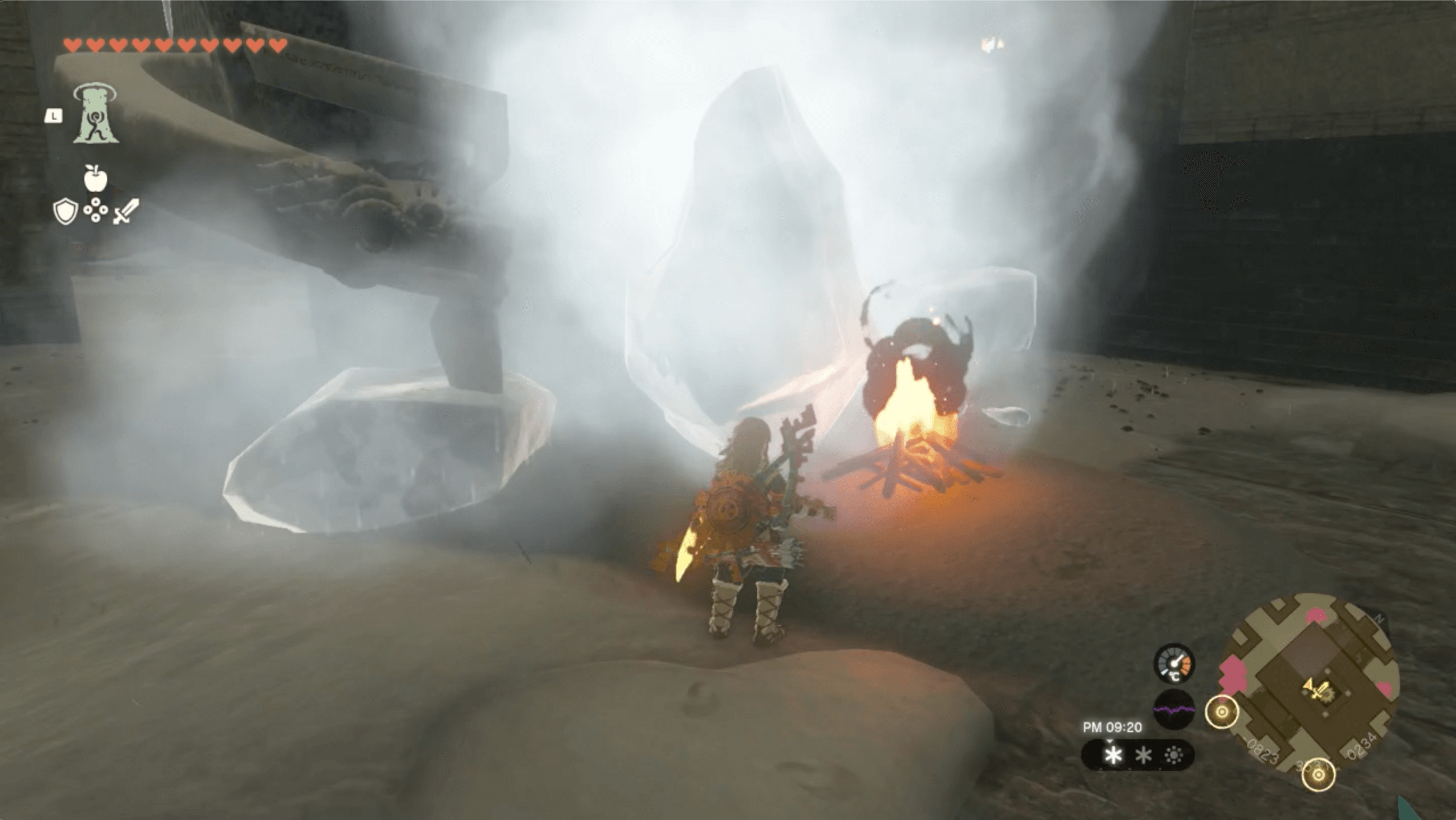 北ローメイ城跡では、ハイラルボックリで上昇気流を起こしたり、氷を溶かすのに頻繁に薪と火打ち石で焚き火を作る機会が多い。そのため、手持ちに薪と火打ち石がないなら、木を伐採したり洞窟を探索して3つずつ以上集めておこう。