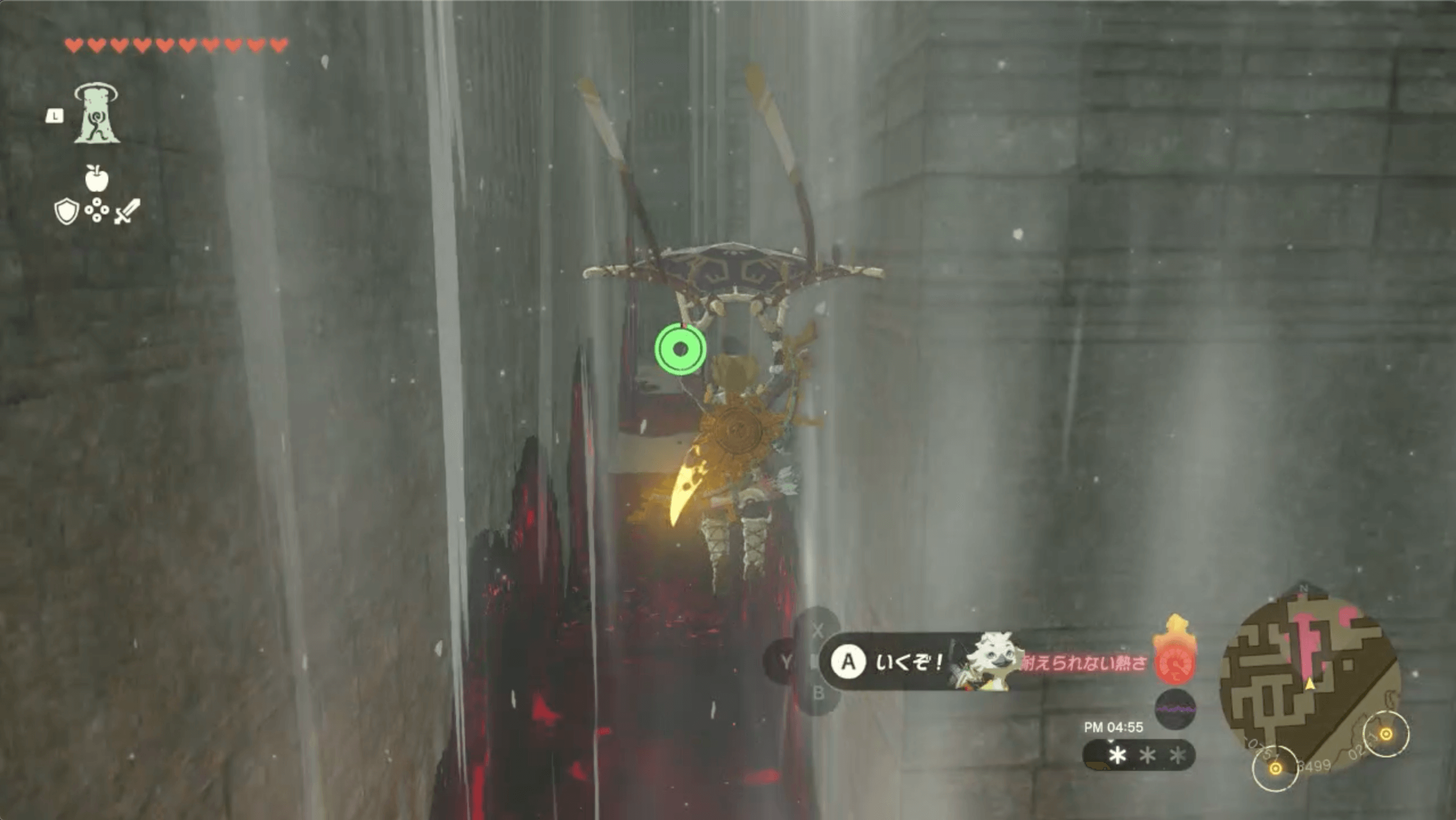 | 薪に火を付けた後、ハイラルボックリを置いて上昇気流を起こし、パラセールで瘴気を超える |