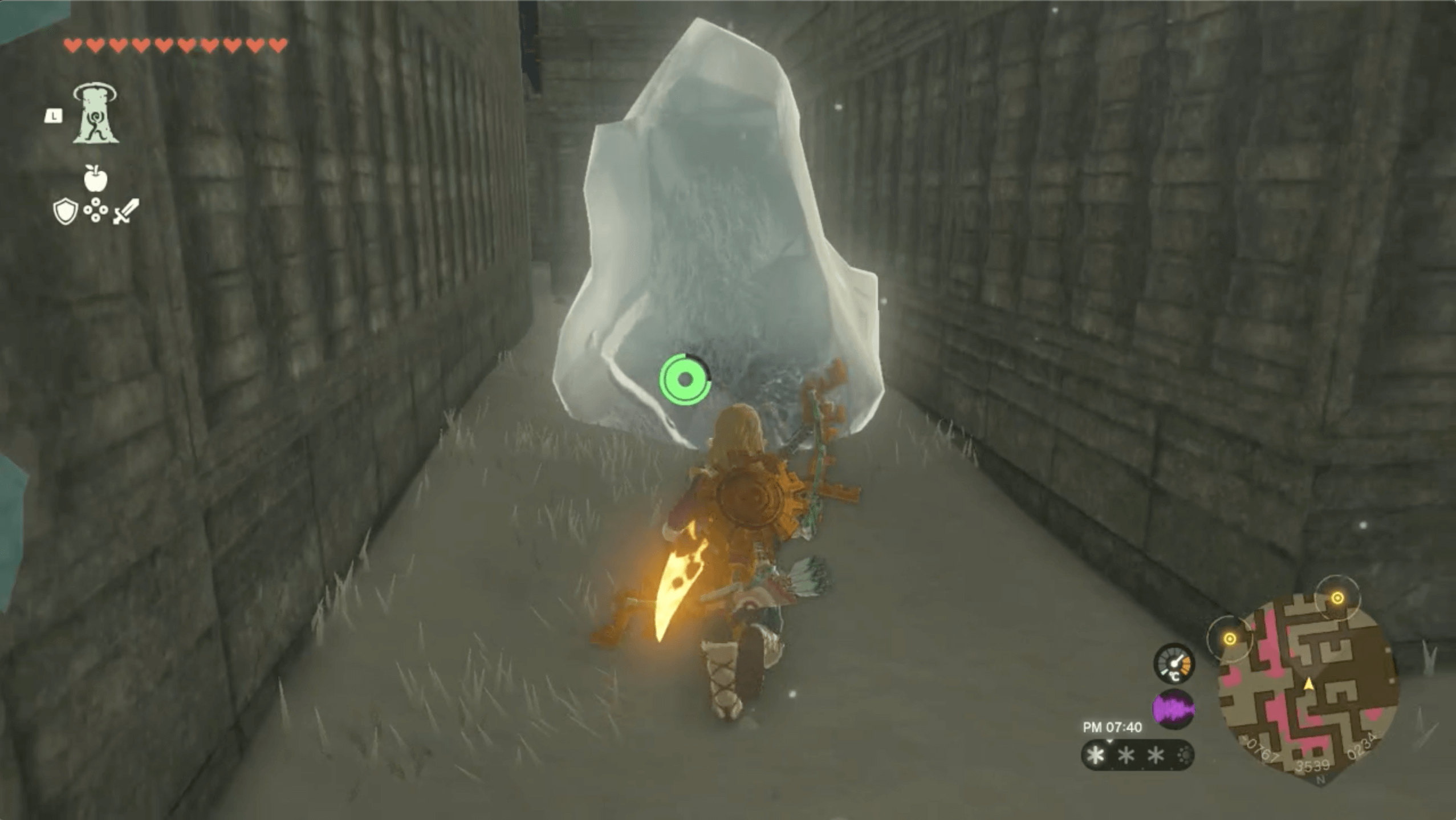 氷の横を通り抜ける └溶かすとハイラルボックリを入手できる |