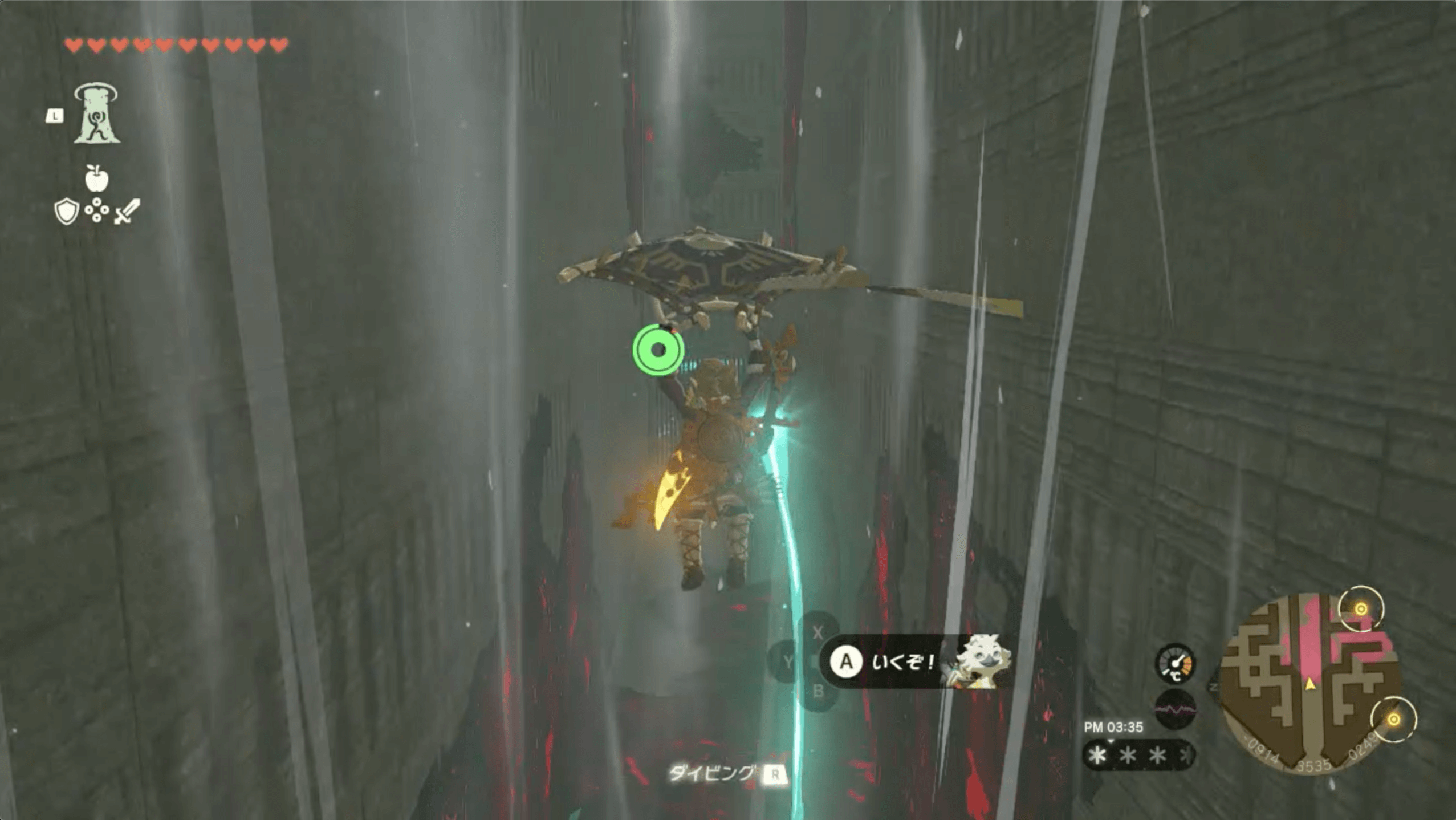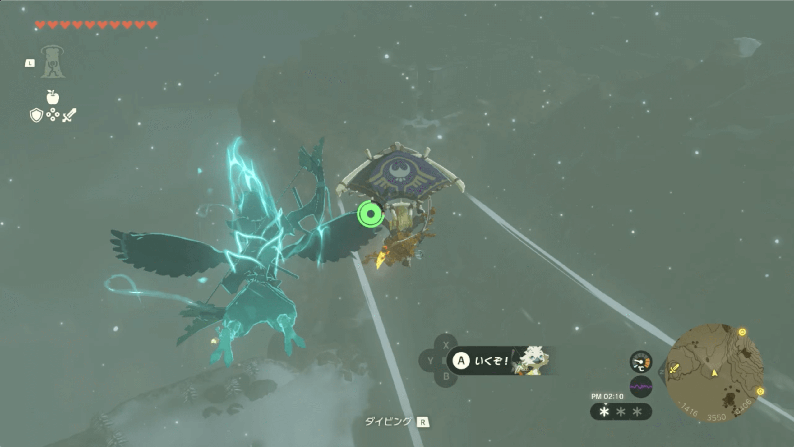 | 東ヘブラ空諸島に着地して、がんばりゲージを回復する |