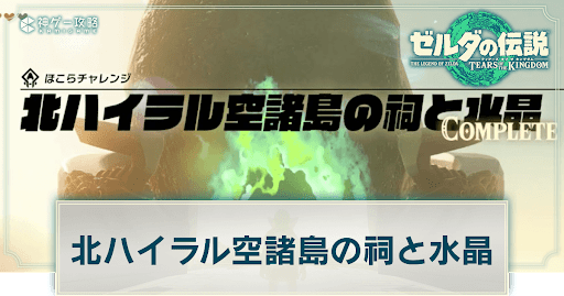 ゼルダの伝説ティアーズオブザキングダム(ティアキン/totk)のほこらチャレンジ「北ハイラル空諸島の祠と水晶」を掲載。発生条件や場所などについても紹介しています。