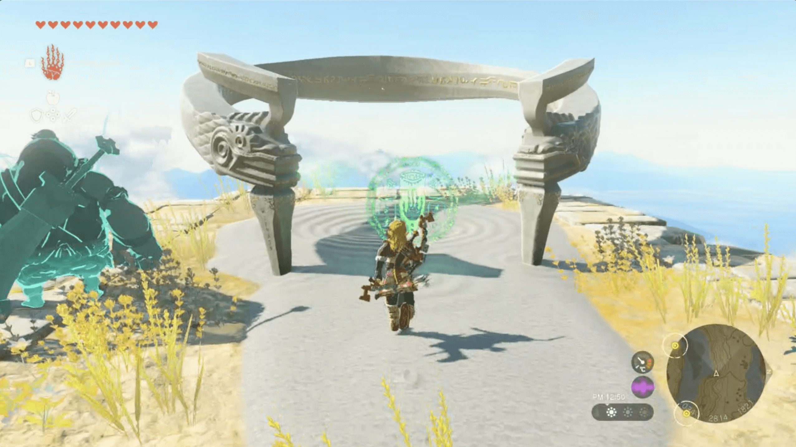 ほこらチャレンジが始まったら、パラセールを使って南に飛んだ先にある空島へ向かおう。非常に距離が近いため、高度を下げすぎなければ、がんばりゲージを増やしていなくても簡単に到着できる。