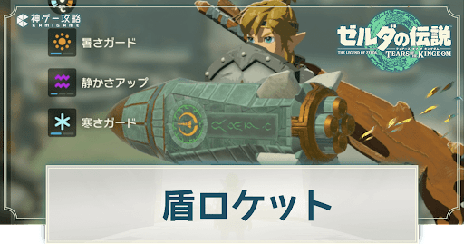 ゼルダの伝説ティアーズオブザキングダム(ティアキン/totk)の盾ロケットを掲載。盾ロケットの使い方や無限入手方法、盾ロケットカプセルが出るガチャの場所についても紹介しています。