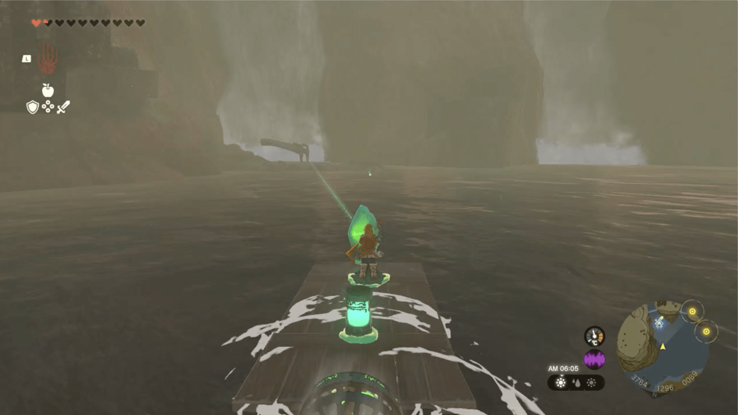 ケポラ峠を西に進み、ミナッカレの滝に着いたら、滝付近から真下にダイビングしよう。水上にダイビングすれば落下ダメージは受けないが、視界が悪く地面が見えないなら、パラセールを使ってゆっくり降りていくと良い。