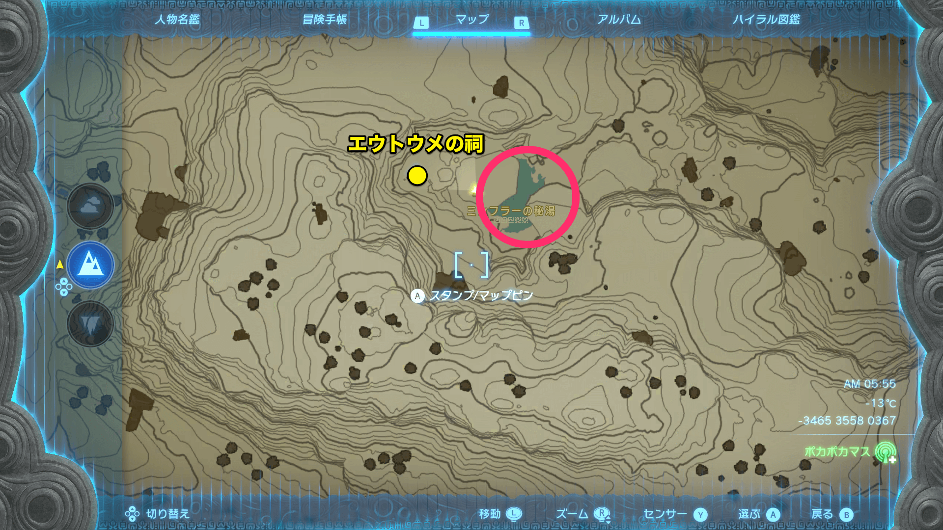 | エウトウメの祠の謎解きと行き方 |