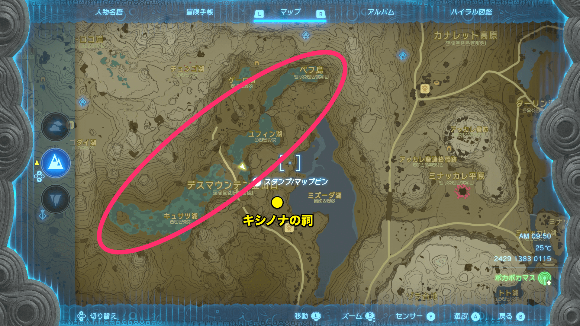 ポカポカマスは、デスマウンテン登山口の水辺で入手できる。集める際は、キシノナの祠にワープして登山道を登りながら探そう。