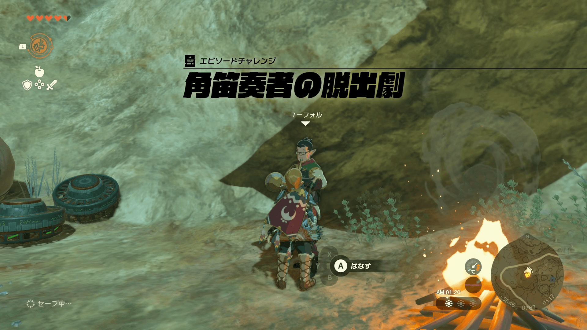 角笛奏者の脱出劇を受注するには、ヘブラ地方南のギシの丘で、穴に落ちているユーフォルと話そう。ギシの丘へは、東にあるタバンタ大橋馬宿付近の「マクルキサの祠」にワープして向かうのがおすすめ。