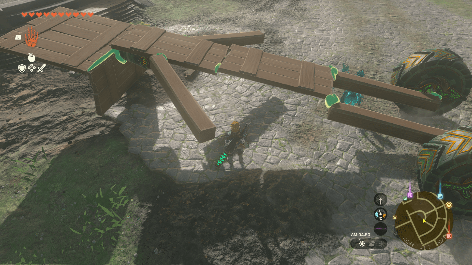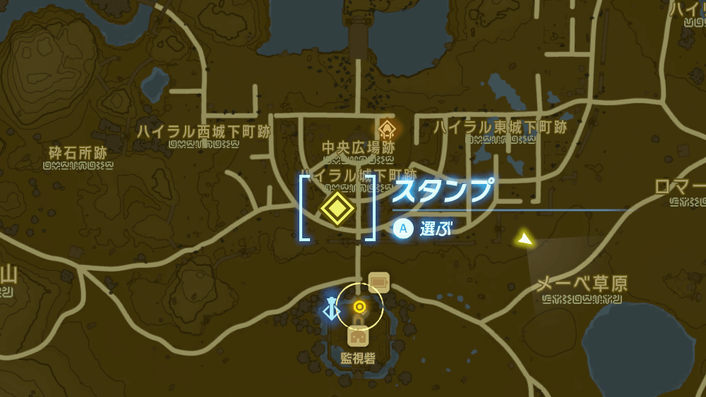 ロボットを試作するなら、監視砦の北にある「ハイラル城下町跡」がおすすめだ。エノキダ工務店の資材が大量に存在し、地形が平坦で敵も少ないため設計に集中しやすい。