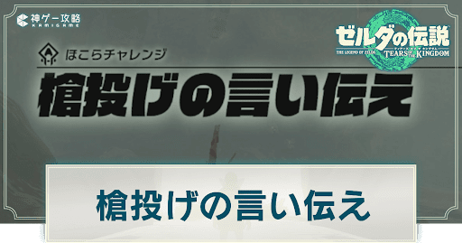 ゼルダの伝説ティアーズオブザキングダム(ティアキン/totk)のほこらチャレンジ「槍投げの言い伝え」を掲載。発生条件や場所などについても紹介しています。