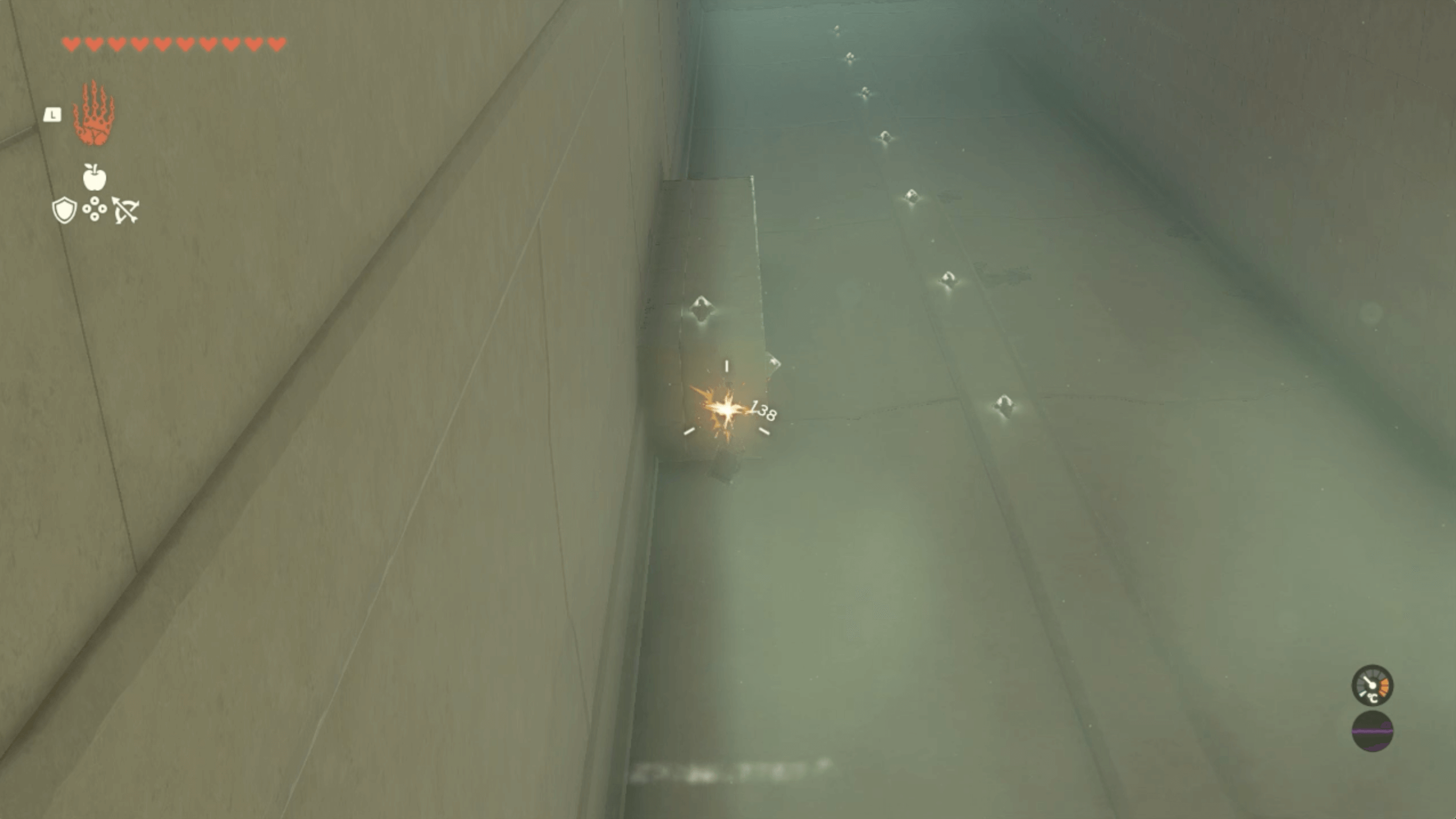 入ってすぐの場所で左上を向いて、矢を使って宝箱のロープを切り、下に落としたら回収する └キースの目玉を使うと確実に当たる |