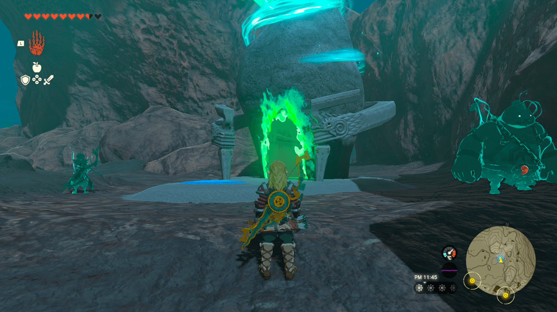 トロッコでの移動時には、トカゲ型の温泉を目印に降車しよう。温泉で降車して北に向かうと、祠が視認できる。