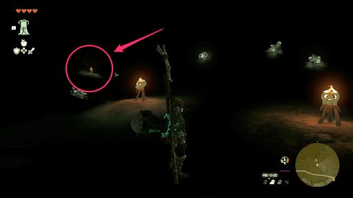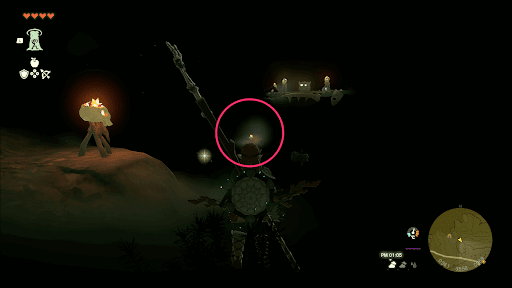 エウンポ高地の洞窟は、明かりが極端に少ない。そのため、洞窟内に生えているアカリバナを利用して、周囲を照らしながら進もう。