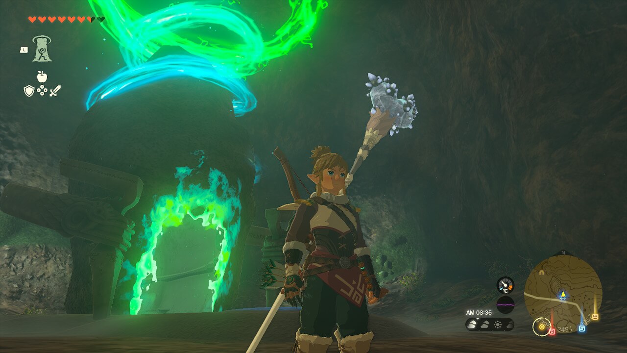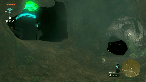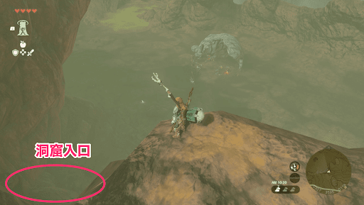 ミネタカカの祠は、エウンポ高地の洞窟内にある。ドイブラン遺跡鳥望台から真北に滑空するだけで入口に辿り着けるが、自然の目印が少ないので敵の拠点を目標にして向かおう。