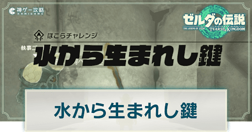 ゼルダの伝説ティアーズオブザキングダム(ティアキン/totk)のほこらチャレンジ「水から生まれし鍵」を掲載。発生条件や場所などについても紹介しています。