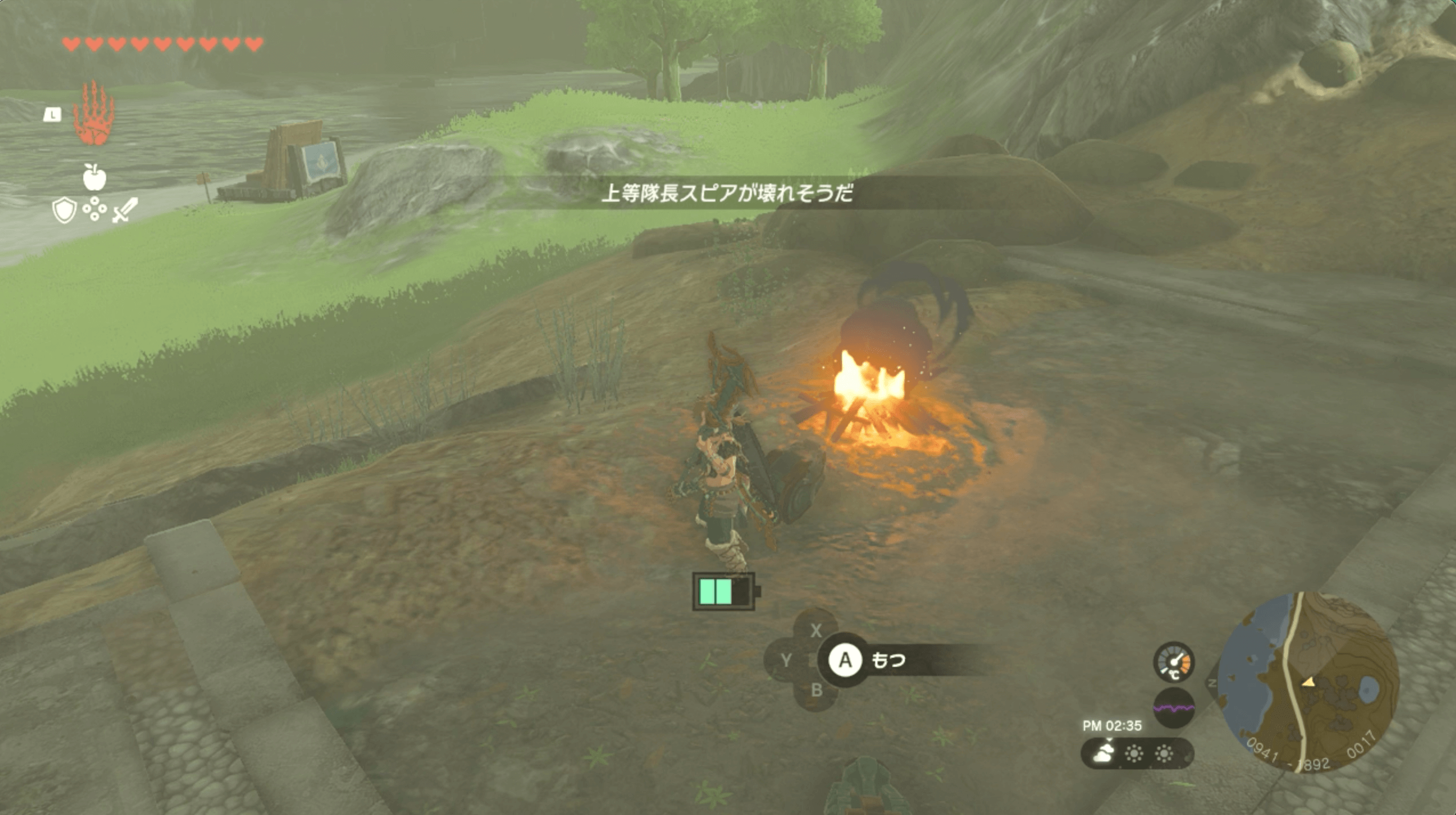鳥望台からジャンプしたら、ノッケ川の近くにある黄色い木を参考に着地しよう。黄色い木の高台を回り込むと、依頼人である執事ゴーレムに会える。
