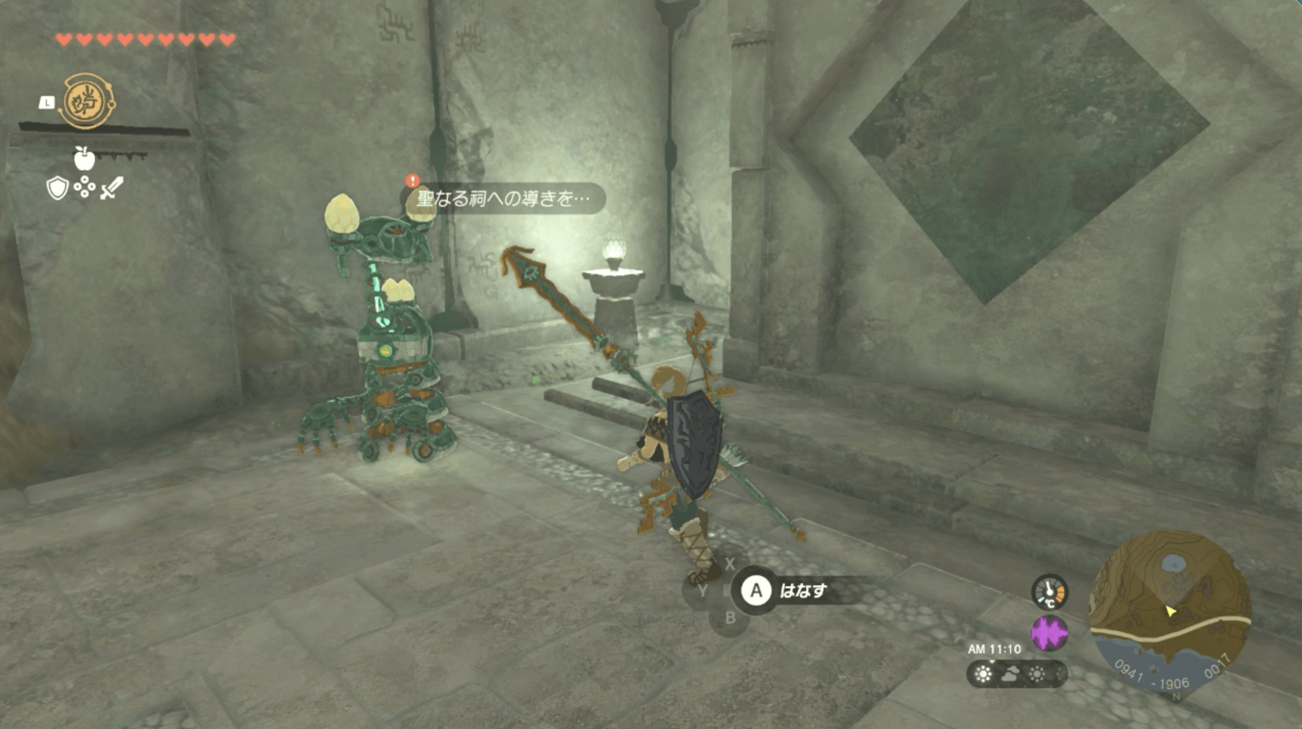 | 1 | 黄色い木の高台の下にいるゴーレムに話しかける |
