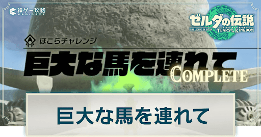 ゼルダの伝説ティアーズオブザキングダム(ティアキン/totk)のほこらチャレンジ「巨大な馬を連れて」を掲載。発生条件や場所などについても紹介しています。