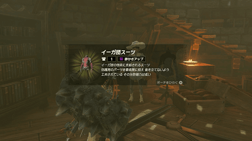 | 詳細 | ゲルドキャニオン鳥望台北、イーガ団幹部詰所内部 |