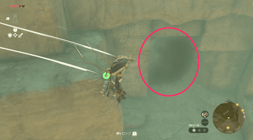 ゲルドキャニオン北西の岩壁に組まれた足場の一番下 |