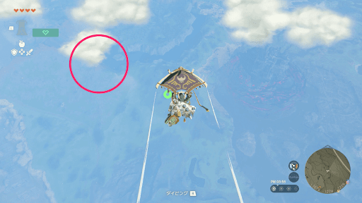 始まりの空島「インイサの祠」から滑空する |