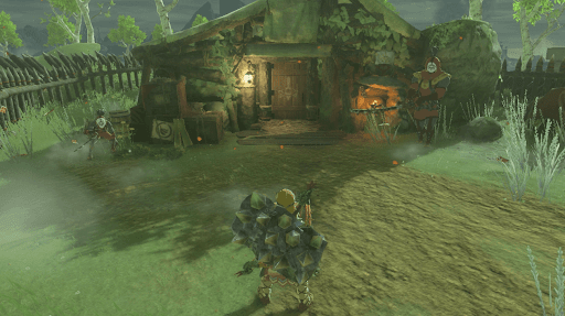 イーガ団のマスクは、時の神殿跡南側のイーガ団アジトにある。アジトに入るためには杭の柵を超える必要があるため、足場を作ったり滑空したりして侵入しよう。