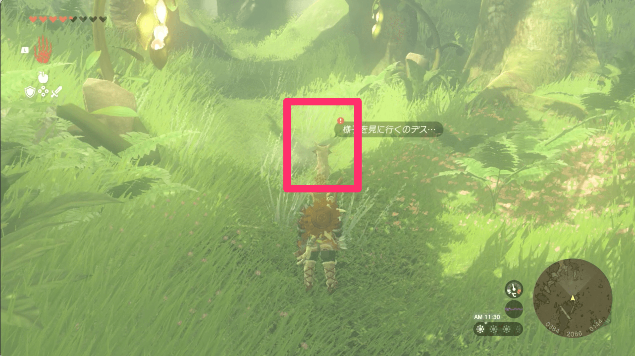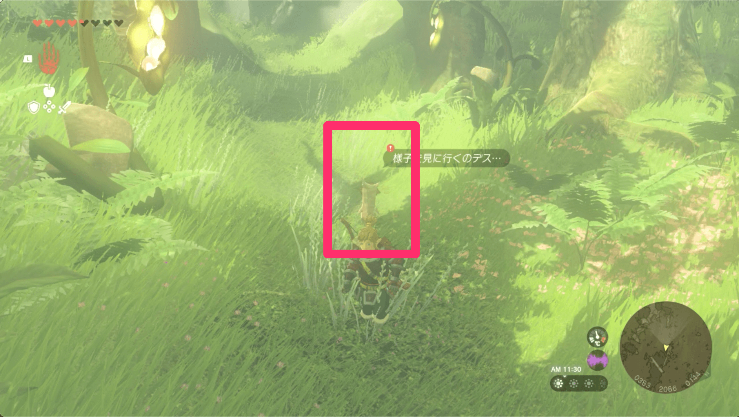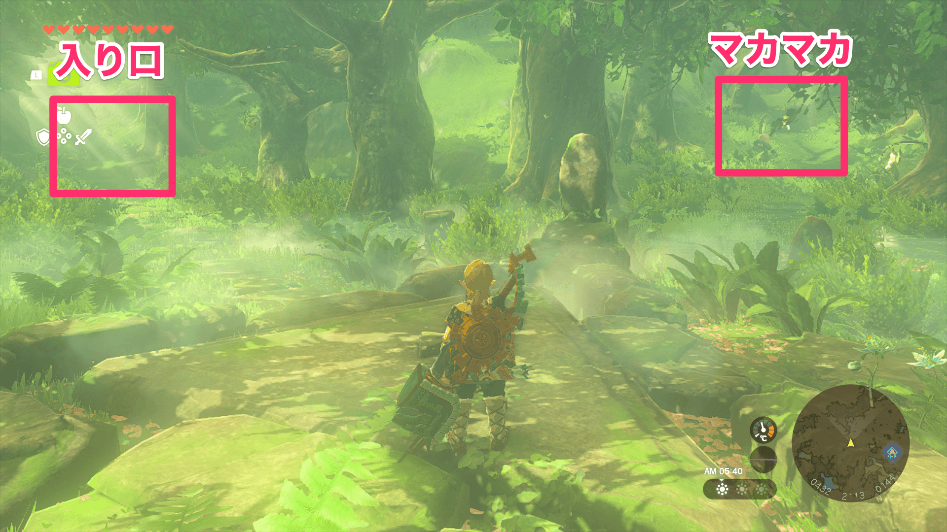 ニンジシの祠へ行くには、コログの森を解放しなくてはならない。デクの樹様を蝕んでいるファントムガノンを倒せば森を解放できるので、まずは地下へ行きファントムガノンを撃破しよう。なお、ガノンの前に出現する瘴気の手対策に、バクダン花を大量に用意しておくのがおすすめ。