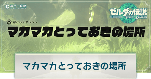 ゼルダの伝説ティアーズオブザキングダム(ティアキン/totk)のほこらチャレンジ「マカマカとっておきの場所」を掲載。発生条件や場所などについても紹介しています。