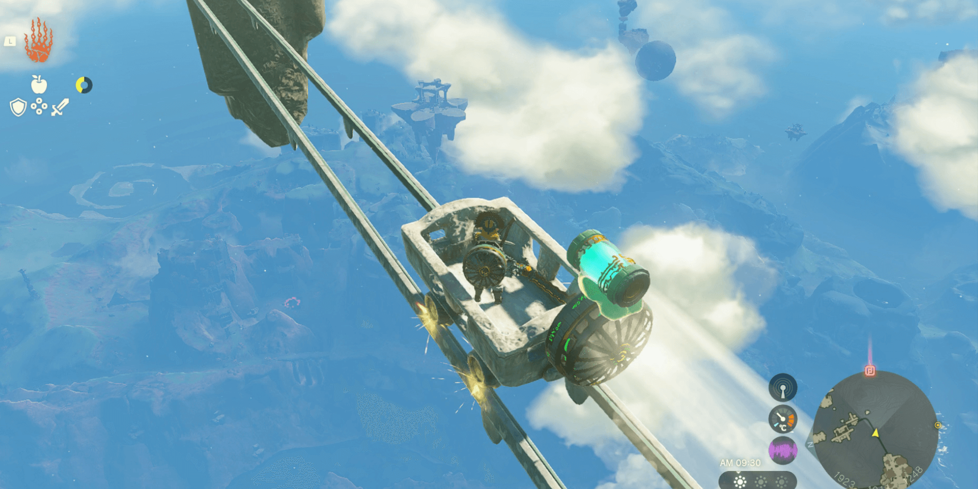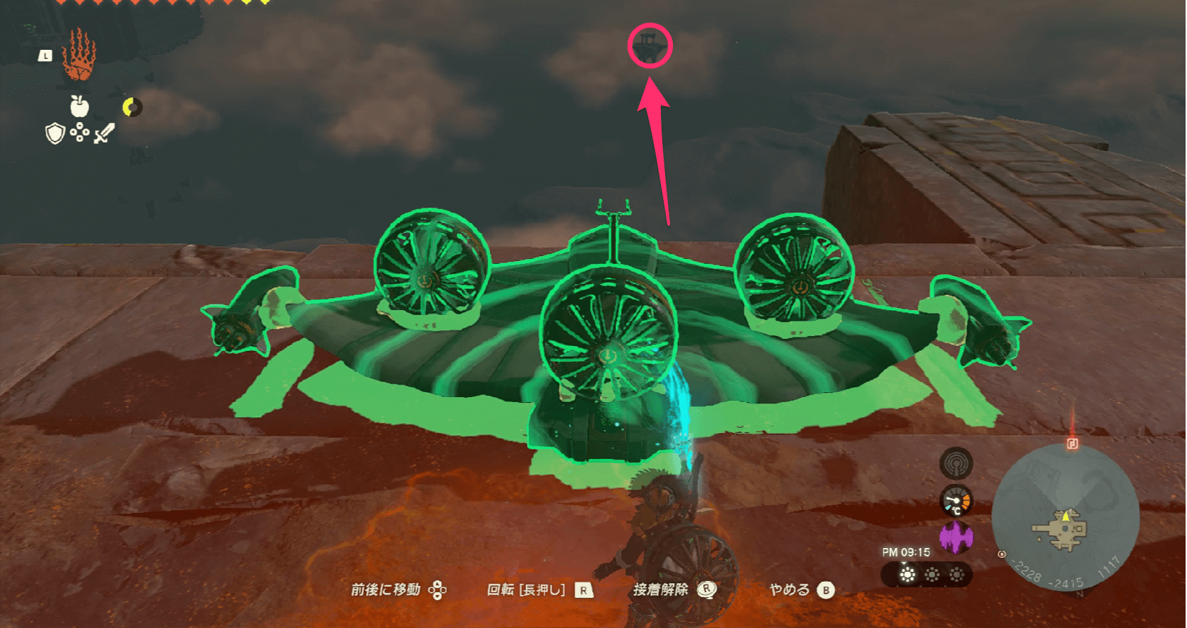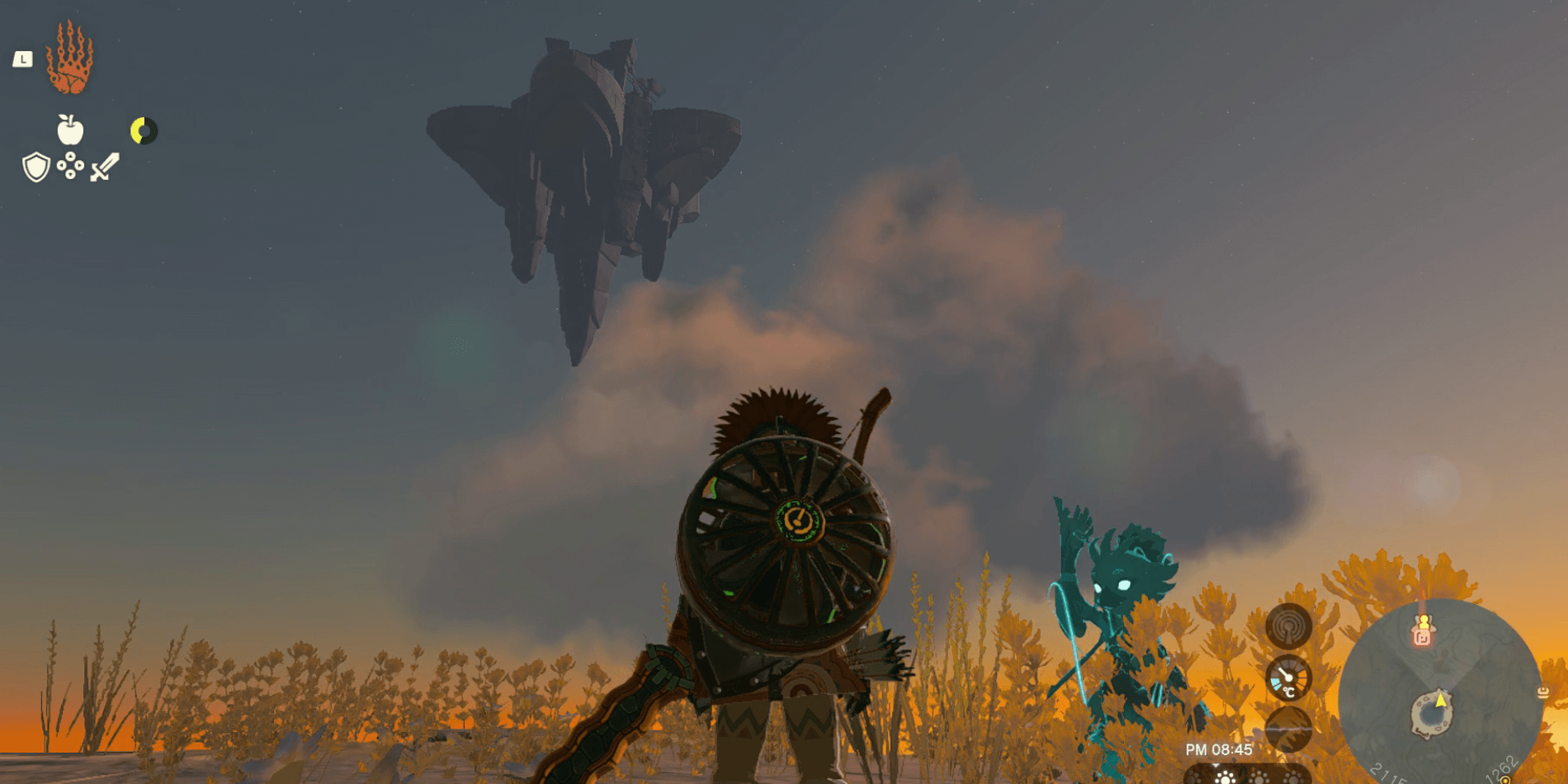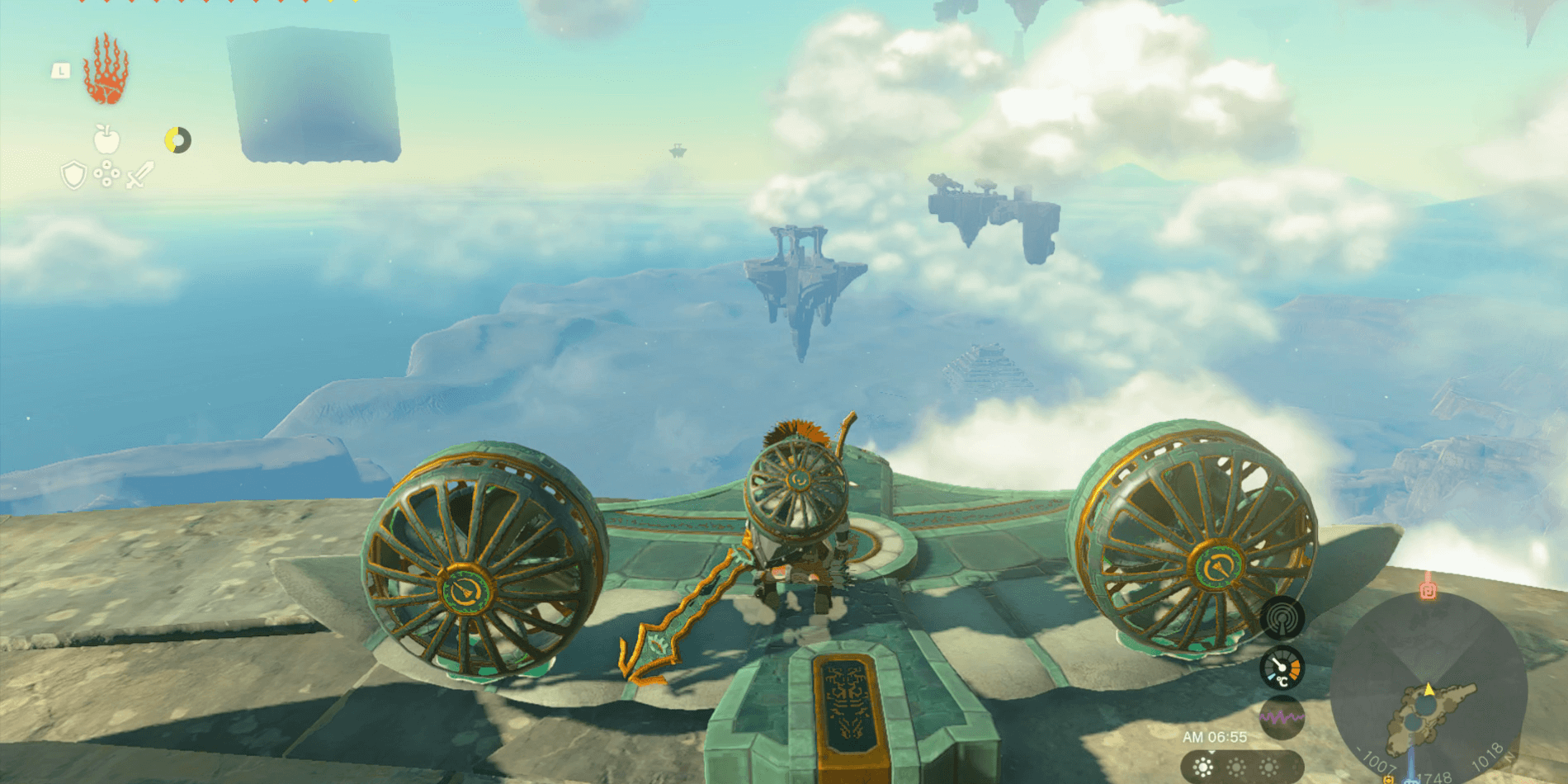 6番目の石碑へは、ゲルドキャニオン鳥望台から南東に飛び、空島にある飛行機を組み上げて南に向かおう。自身でロケットなどを追加しておくと、安定して石碑の場所に向かえる。