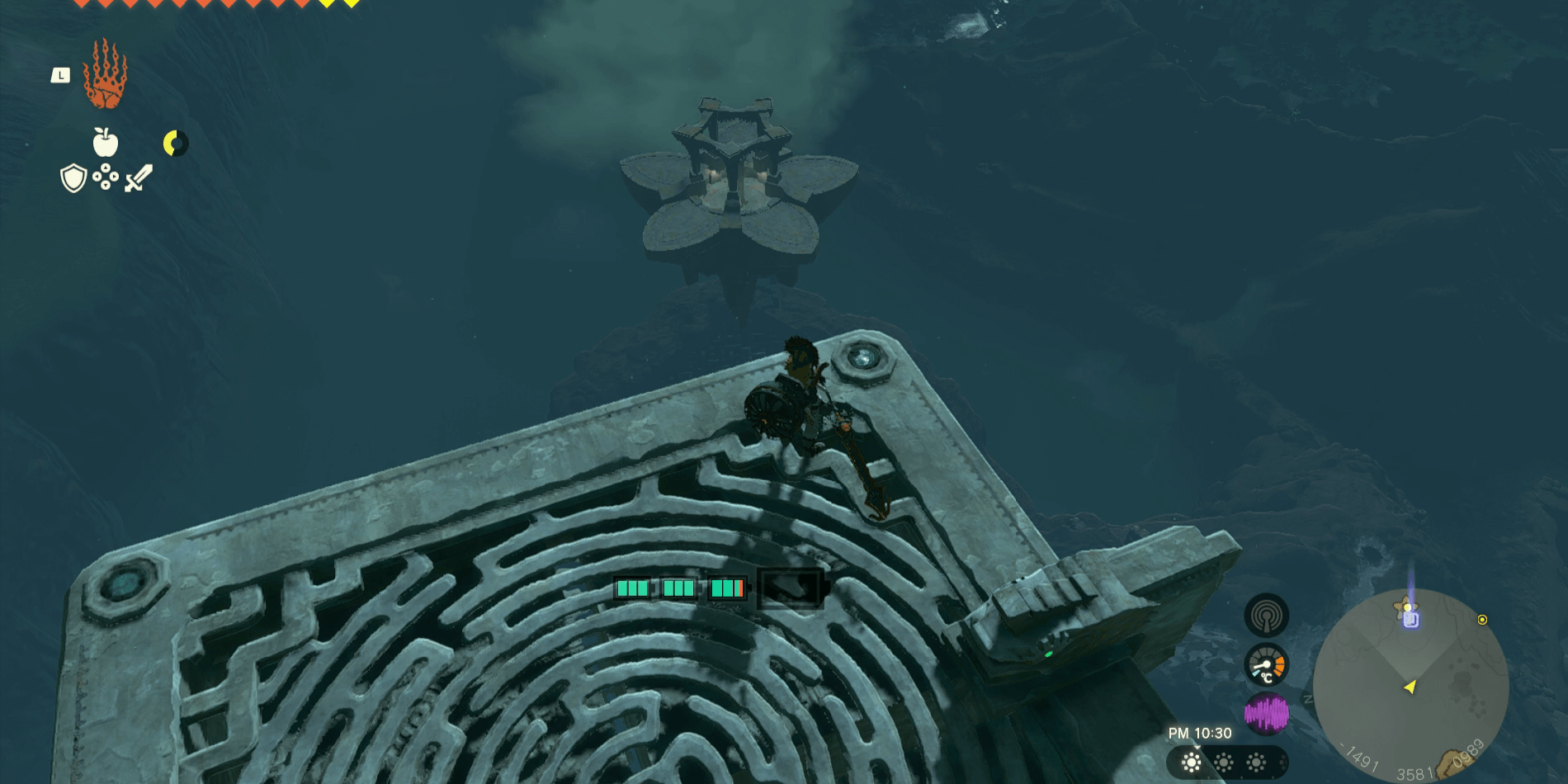 10番目の石碑には、ドイブラン遺跡鳥望台から西に飛ぶと行ける。途中の島々は挟まずとも、直行すれば楽に到着可能だ。10番目の石碑がある場所に到着すると、足場が抜けて深穴へと落ちていくため、追いかけてウツシエを撮ろう。