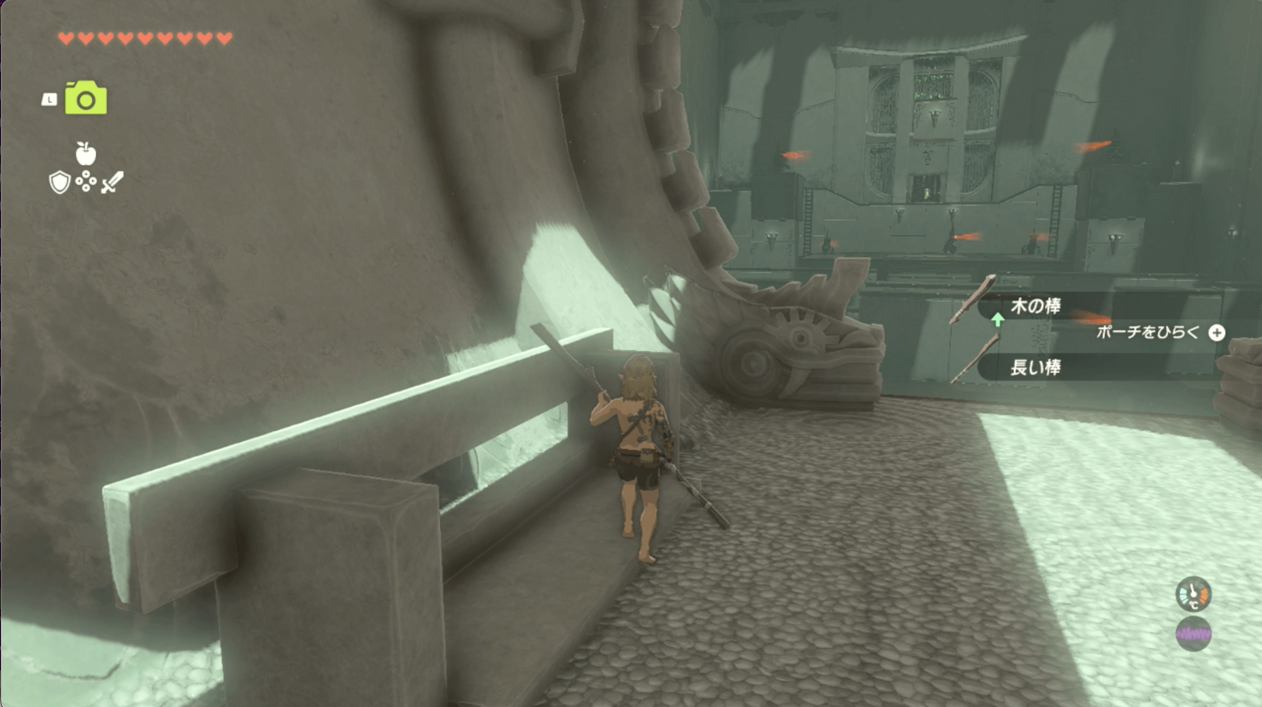 ジョクウシニの祠の試練は、道具を持ち込めない「一身の試練」だ。武器や道具は無しの状態で始まるが、リンクの強化状態は引き継がれるので、体力が不安なら先にハートの上限を上げてこよう。