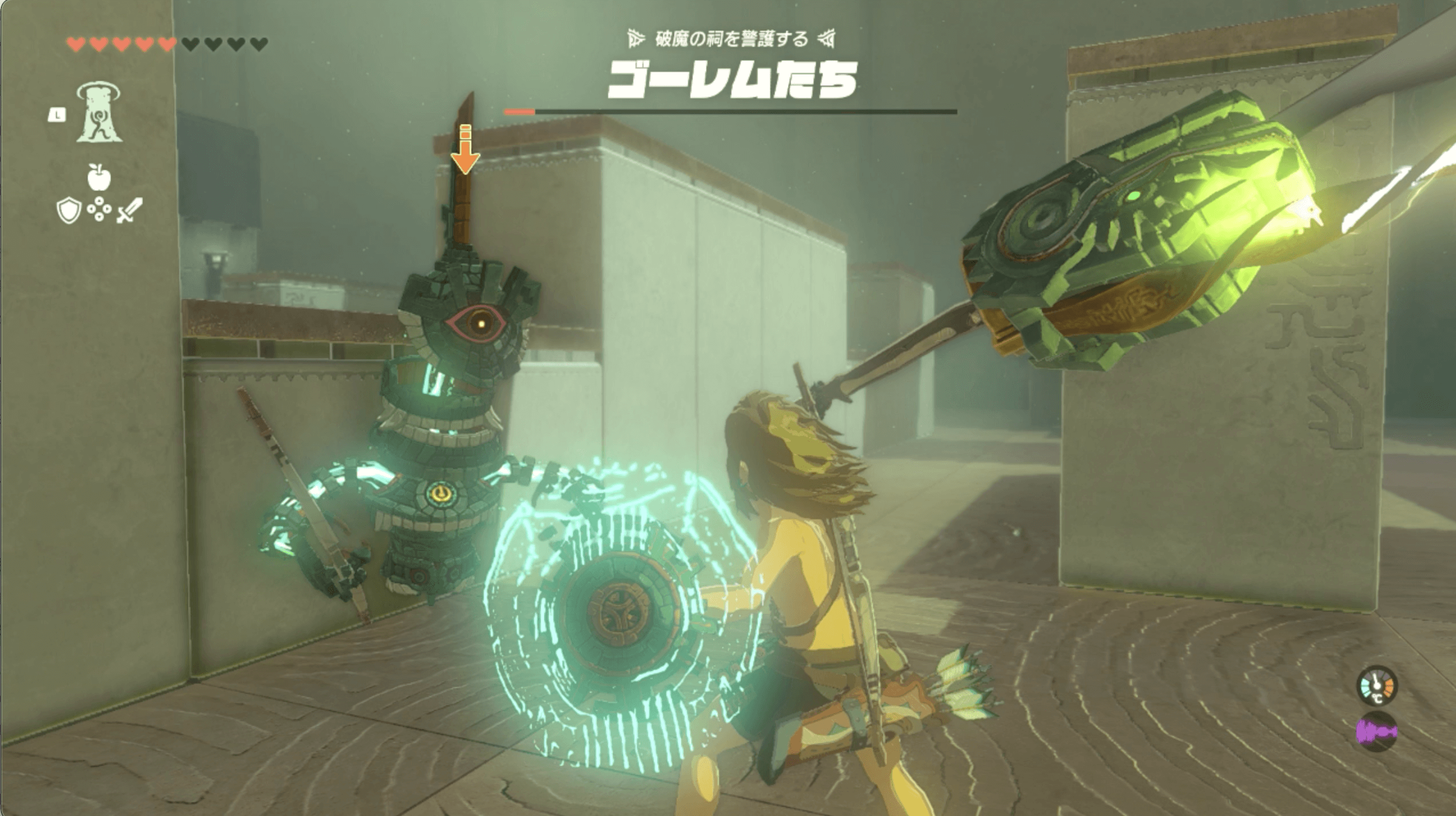 弓と雷龍の頭武器を使ってゴーレムを倒す └武器が壊れたらゴールの扉前にある雷龍の頭をスクラビルド |