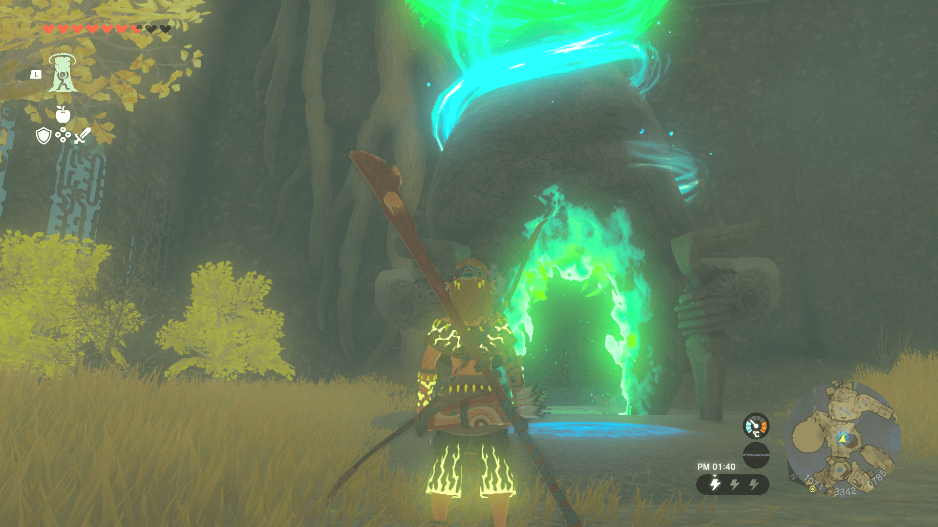 雷鳴の島は常に雷雨なので、雨で濡れて壁は登れないようになっている。道が途切れている場所を通る際は、近くにあるジャンプ装置を使おう。ジャンプ装置は雷が落ちると起動するので、雷が落ちるまで待つか金属製のオブジェクトをスイッチの側に置くと良い。