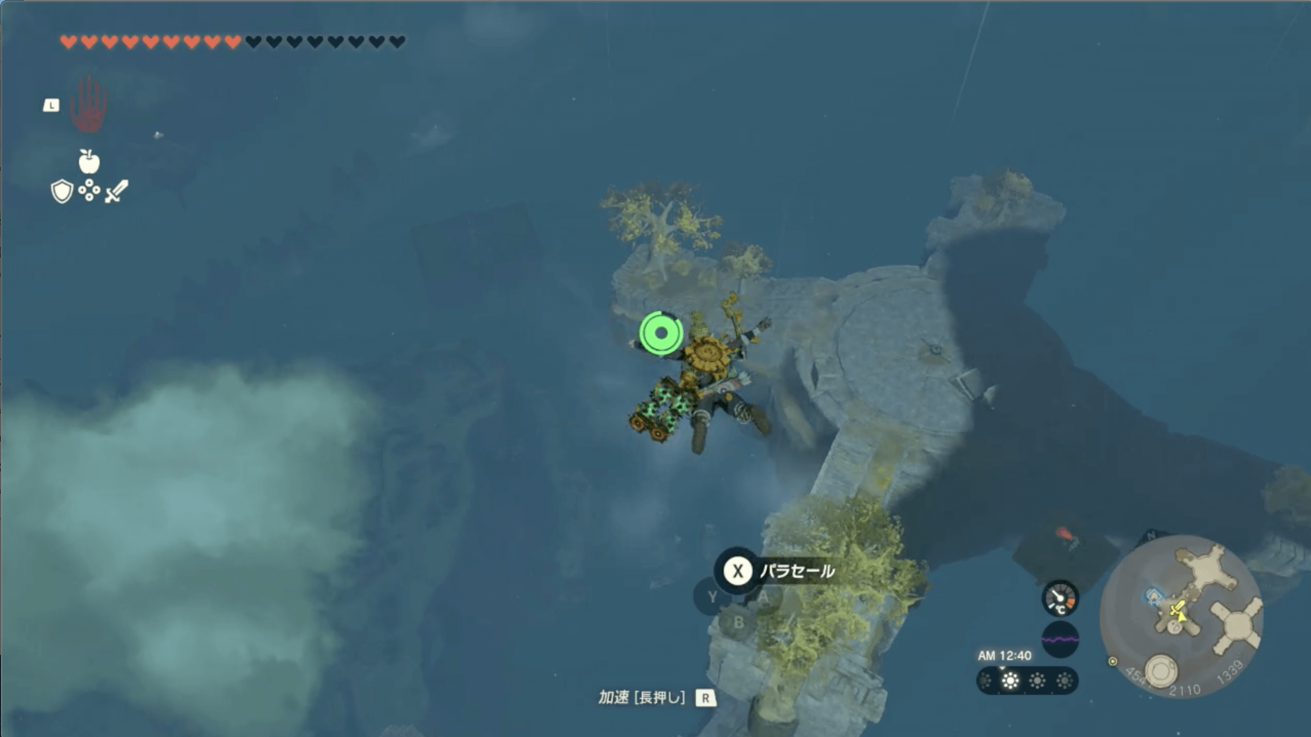 | バッテリーがなくなったら、パラセールで空島まで飛ぶとたどり着ける | |