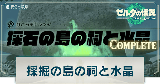 ゼルダの伝説ティアーズオブザキングダム(ティアキン/totk)のほこらチャレンジ「採掘の島の祠と水晶」を掲載。発生条件や場所などについても紹介しています。