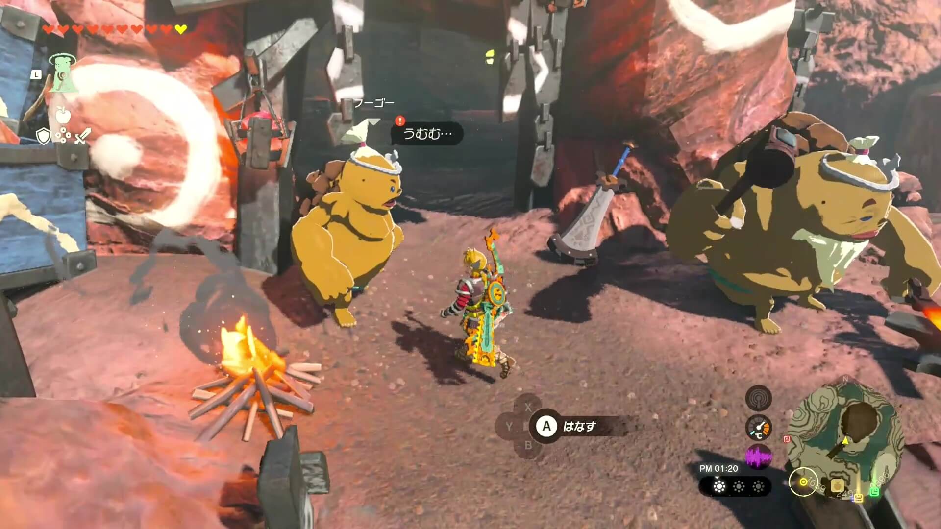 ゴロンシティ周辺に登場する敵「岩オクタ」の前に武器を置いて離れると、武器を吸い込んで吐き出す際に耐久値を回復してくれる。貴重な武器を何度も使い回せるため、武器が壊れそうになったら使わずにポーチに保存しておき、ゴロンシティに戻って修理するのがおすすめだ。