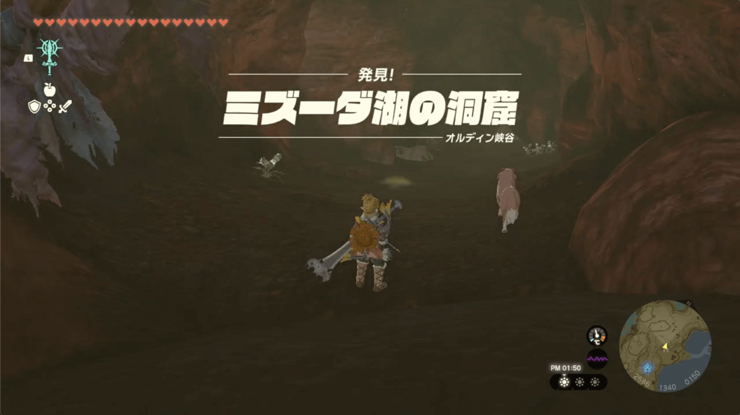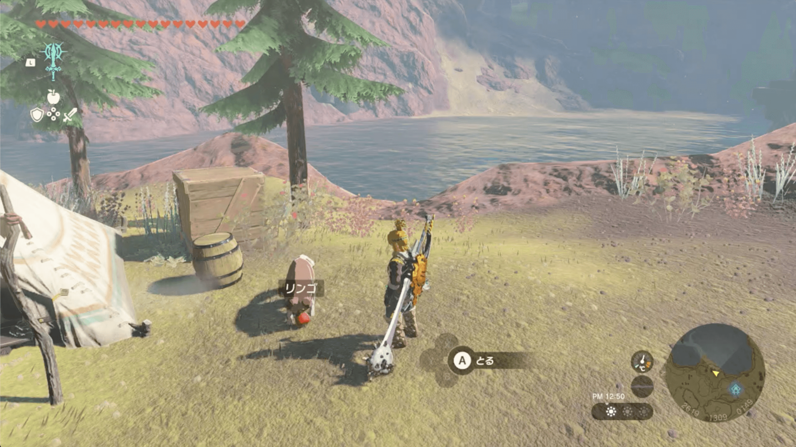 犬に「リンゴ」や「ケモノ肉」といったエサをあげなくても、ミニチャレンジのクリアはできる。もし、リンゴなどを持っていないなら、記事の画像を参考にして、洞窟内の宝箱を取り出そう。