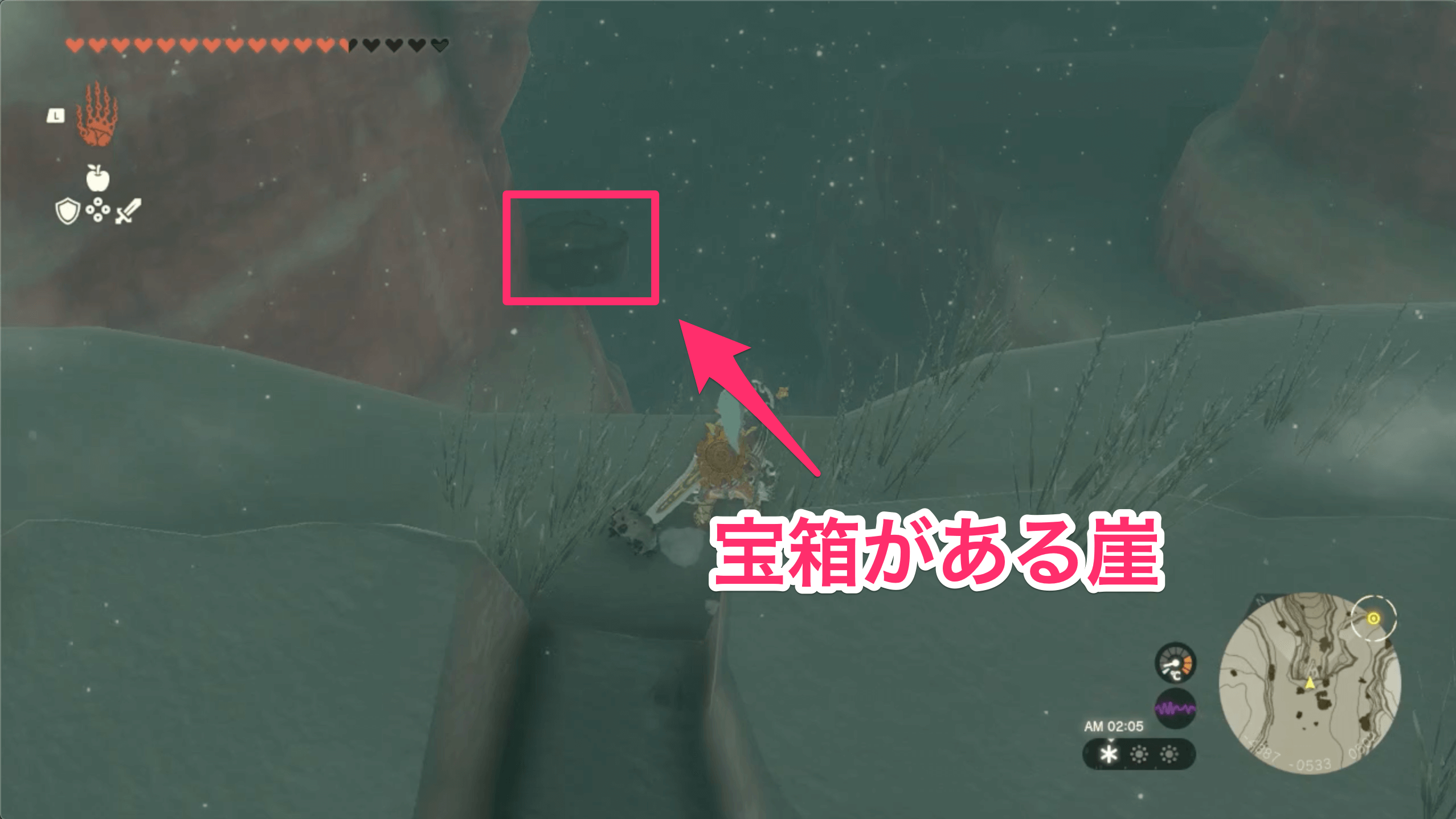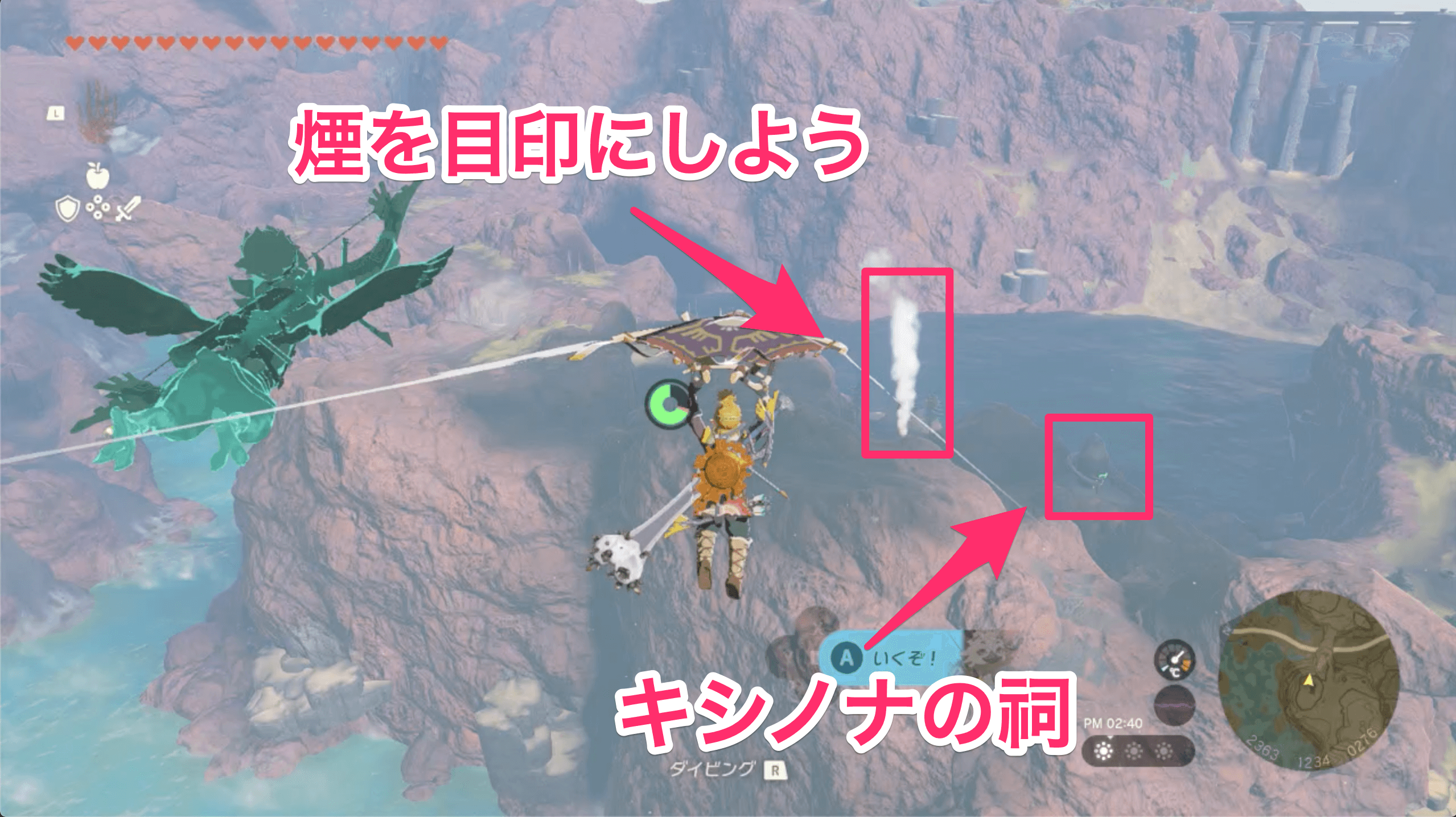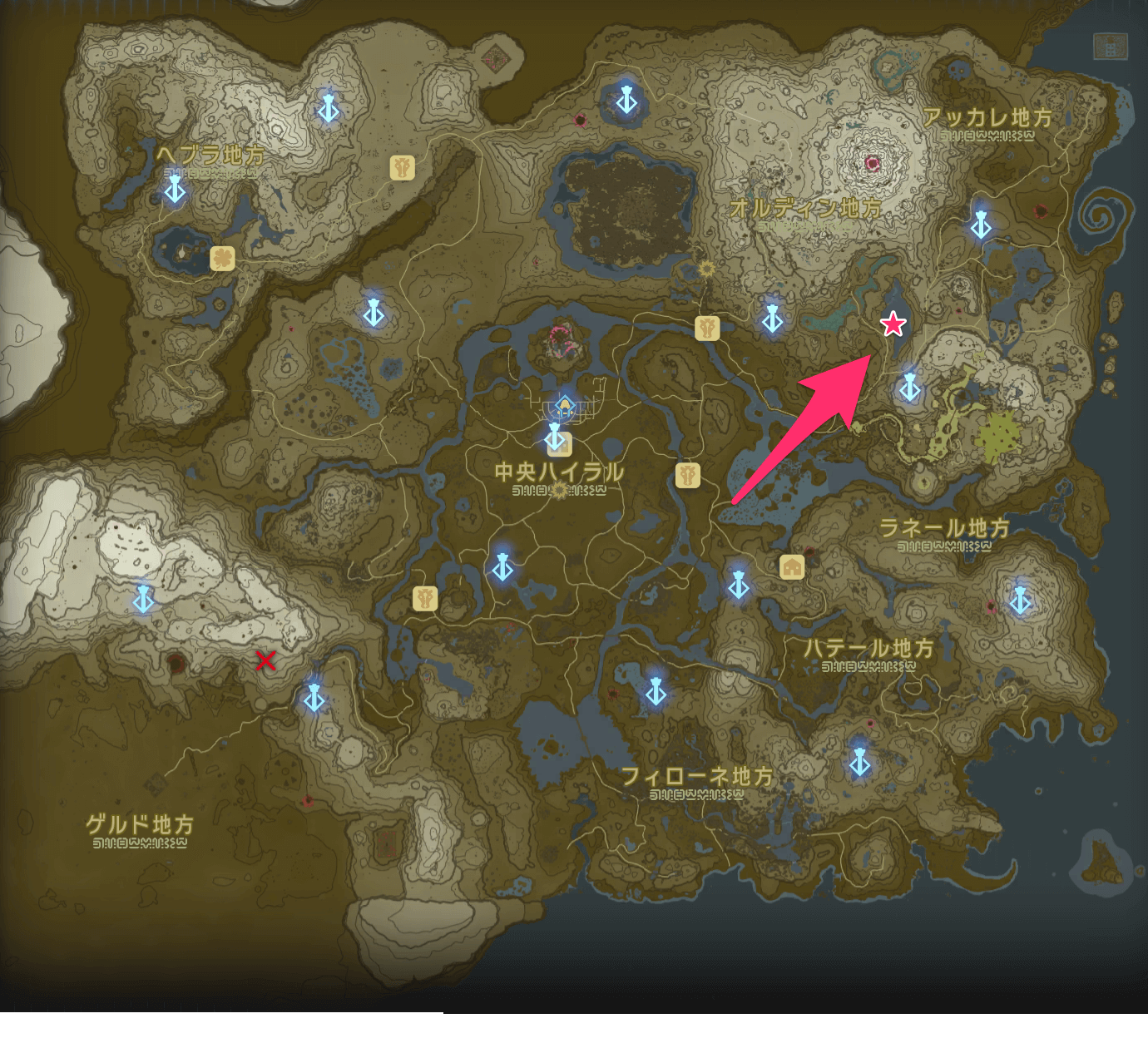 | オルディン峡谷鳥望台から東に飛ぶ └キシノナの祠から向かっても良い |