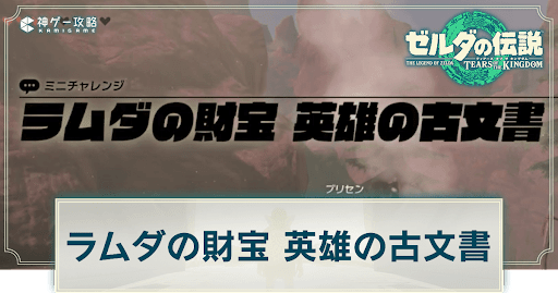 ゼルダの伝説ティアーズオブザキングダム(ティアキン/totk)のチャレンジ「ラムダの財宝英雄の古文書」を掲載。発生条件や場所などについても紹介しています。