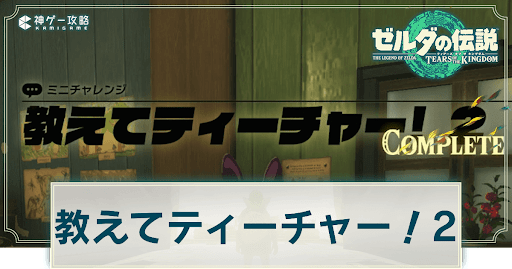 ゼルダの伝説ティアーズオブザキングダム(ティアキン/totk)のチャレンジ「教えてティーチャー!2」を掲載。発生条件や場所などについても紹介しています。