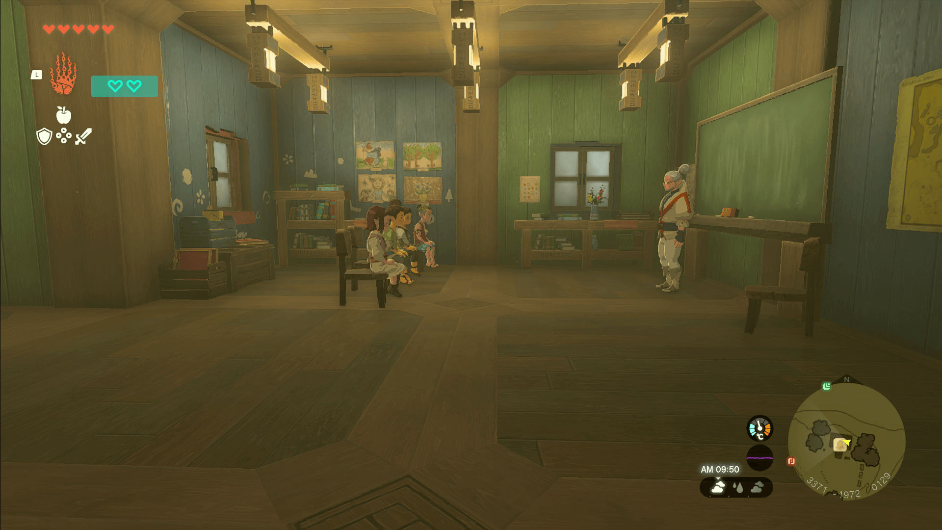 ハテノ村北西のハテノ学校では、AM09:00~PM02:00まで授業が行われている。授業中にシモンに話しかけると、チャレンジを開始可能だ。