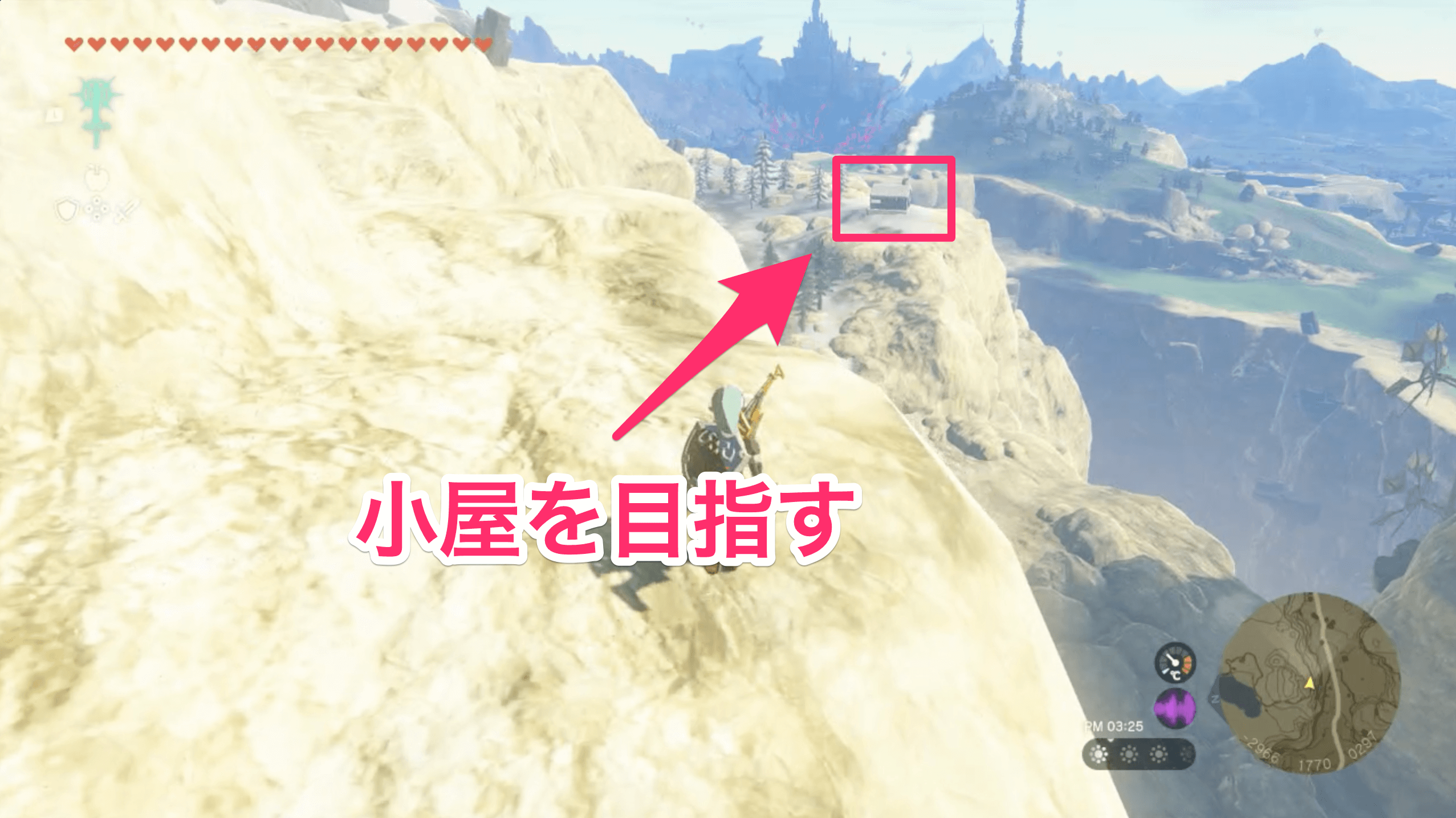 「扉を開けて」を受注できるタバンタヒルでは、寒さガードレベルを1以上にしていないとダメージを受けてしまう。そのため、防具や料理を駆使して寒さへの対策をしておこう。