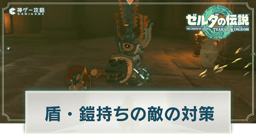ゼルダの伝説ティアーズオブザキングダム(ティアキン/totk)の盾持ちの敵について掲載。盾持ちの敵や鎧付きの敵の倒し方、対策方法について紹介しています。