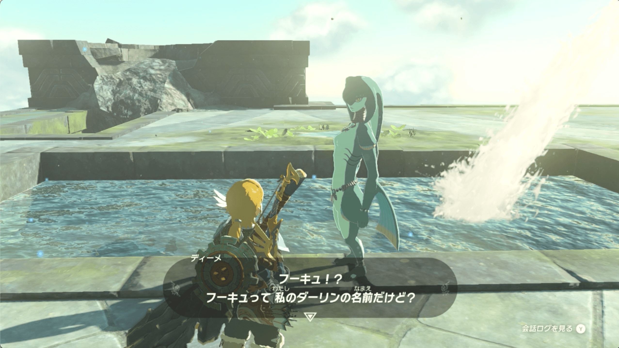 「舞い上がった嫁」の依頼人であるフーキュは、ゾーラの里にいる。ゾーラの里にはモガワカの祠があるので、里にたどり着いた時に解放しておこう。フーキュがいる場所には、モガワカの祠にワープしてからトーレルーフを使うと辿り着ける。