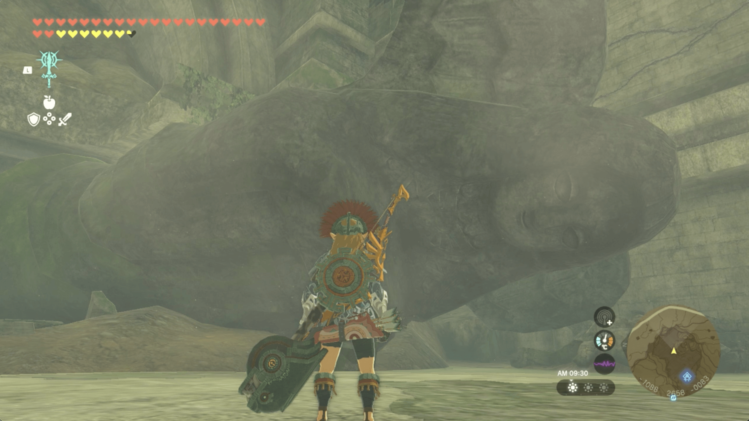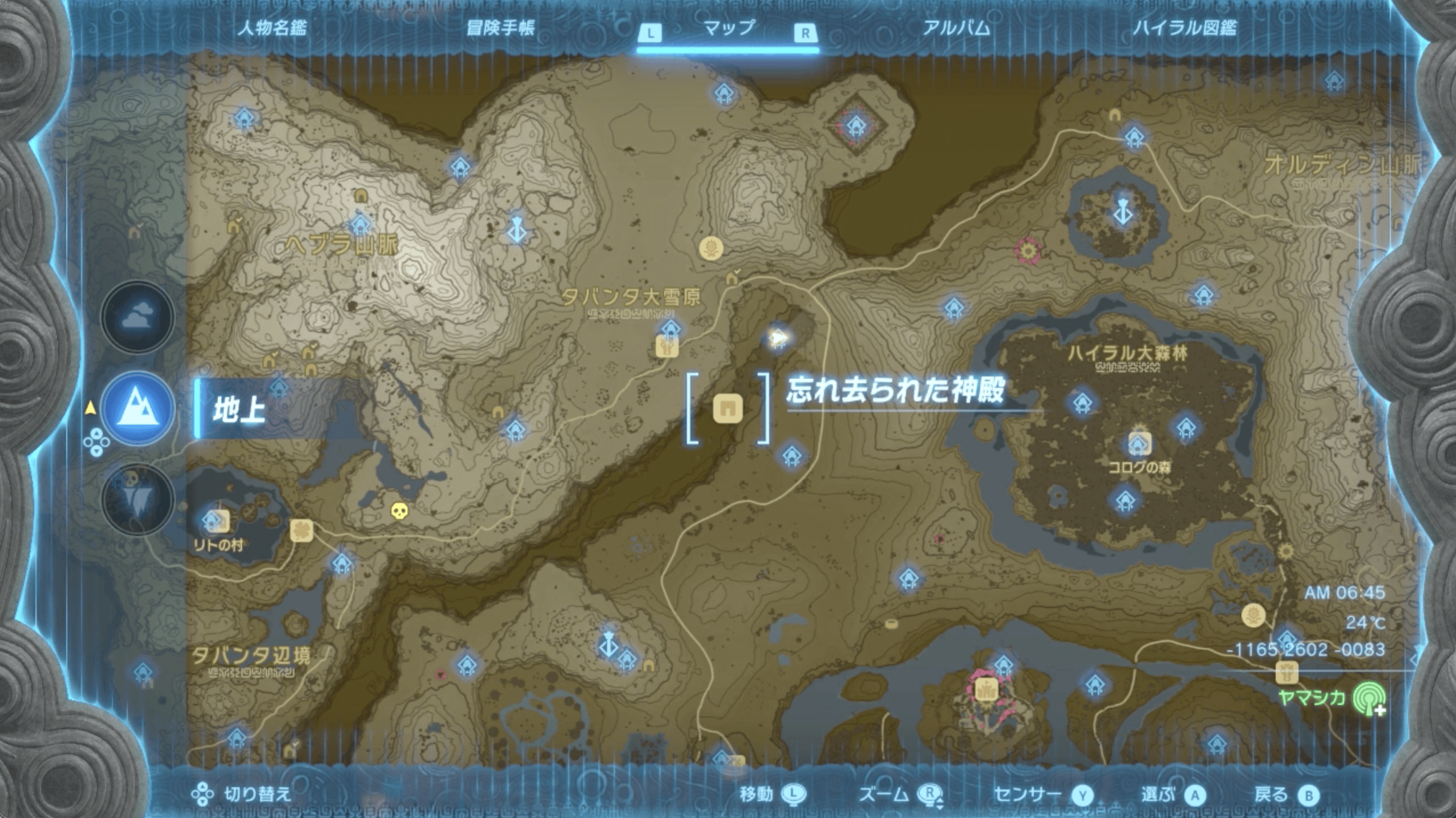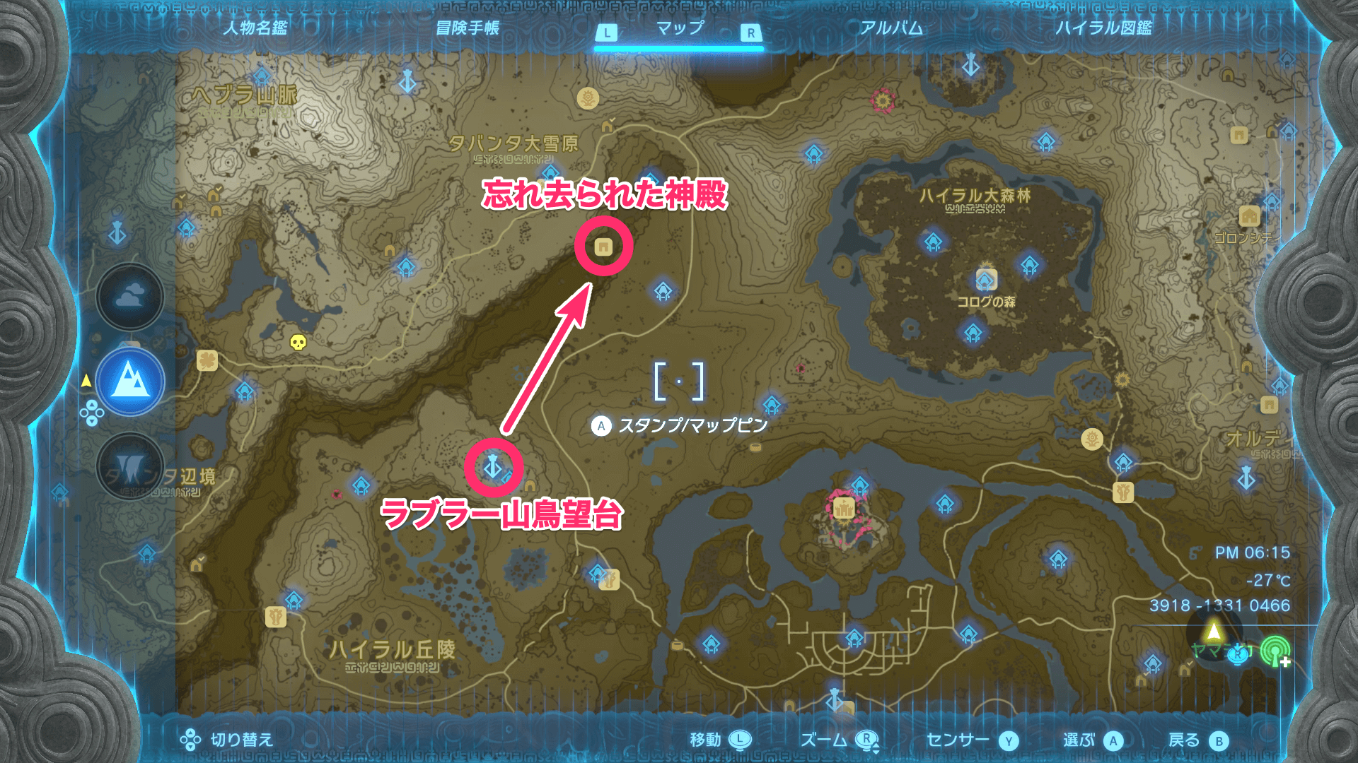 倒れた女神像がある「忘れ去られた神殿」は、ヘブラ地方のククジャ谷の中にある。まだ訪れていない場合は、ラブラー山鳥望台から北上して谷の中にある神殿に侵入しよう。