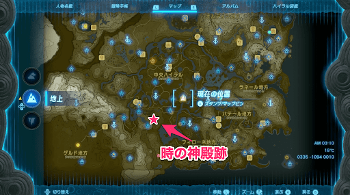 目標の女神像は、時の神殿跡に設置されている。時の神殿跡は、ハイリア湖の北西にあるため、ハイラル平原鳥望台か始まりの空島にあるインイサの祠から滑空して向かおう。
