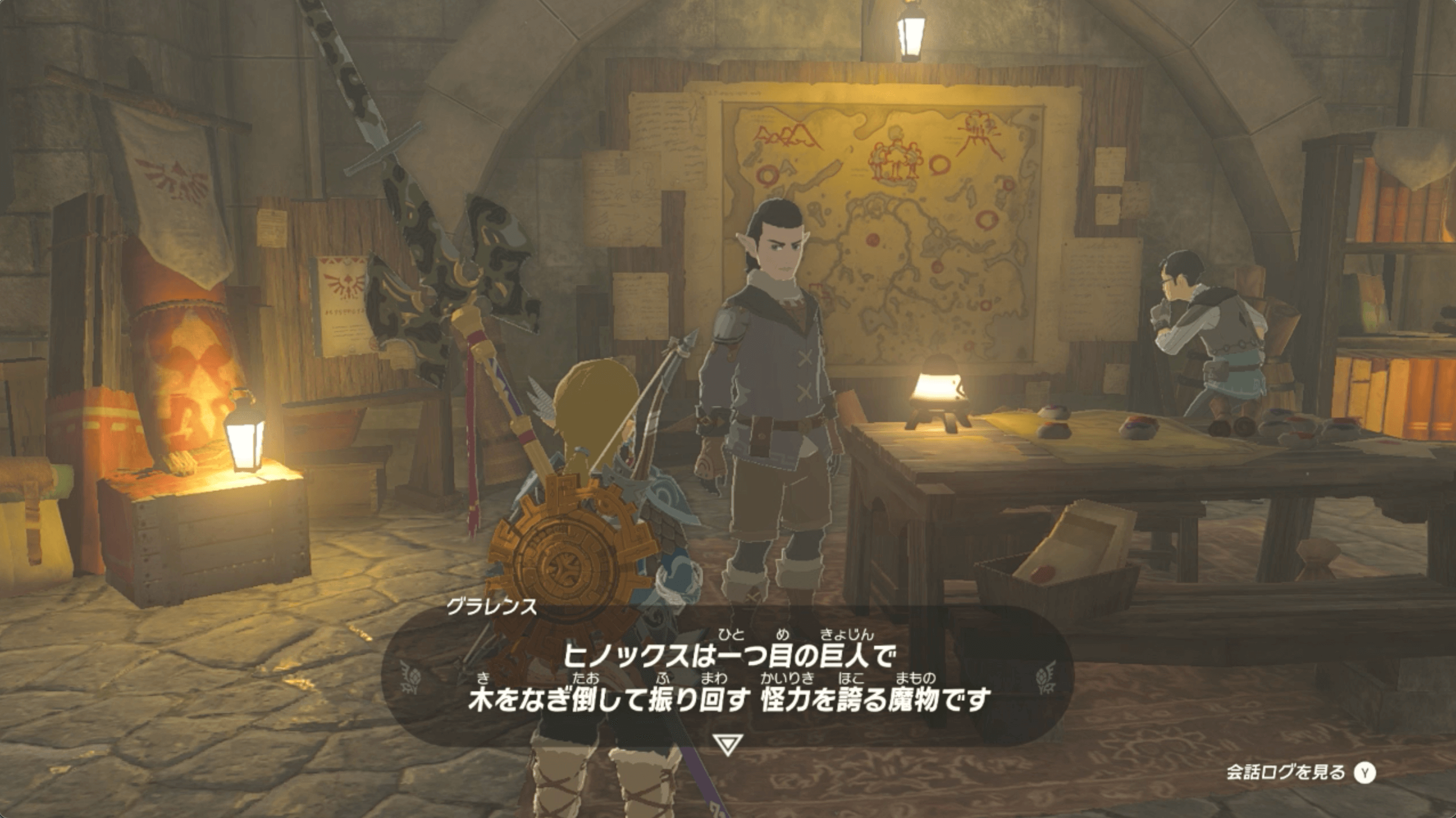 「ヒノックスWANTED」の依頼人であるグランレスは、監視砦の避難壕にいる。避難壕に入るハシゴを降りたら、壁にかかったマップの前にいるグランレスに話しかけよう。