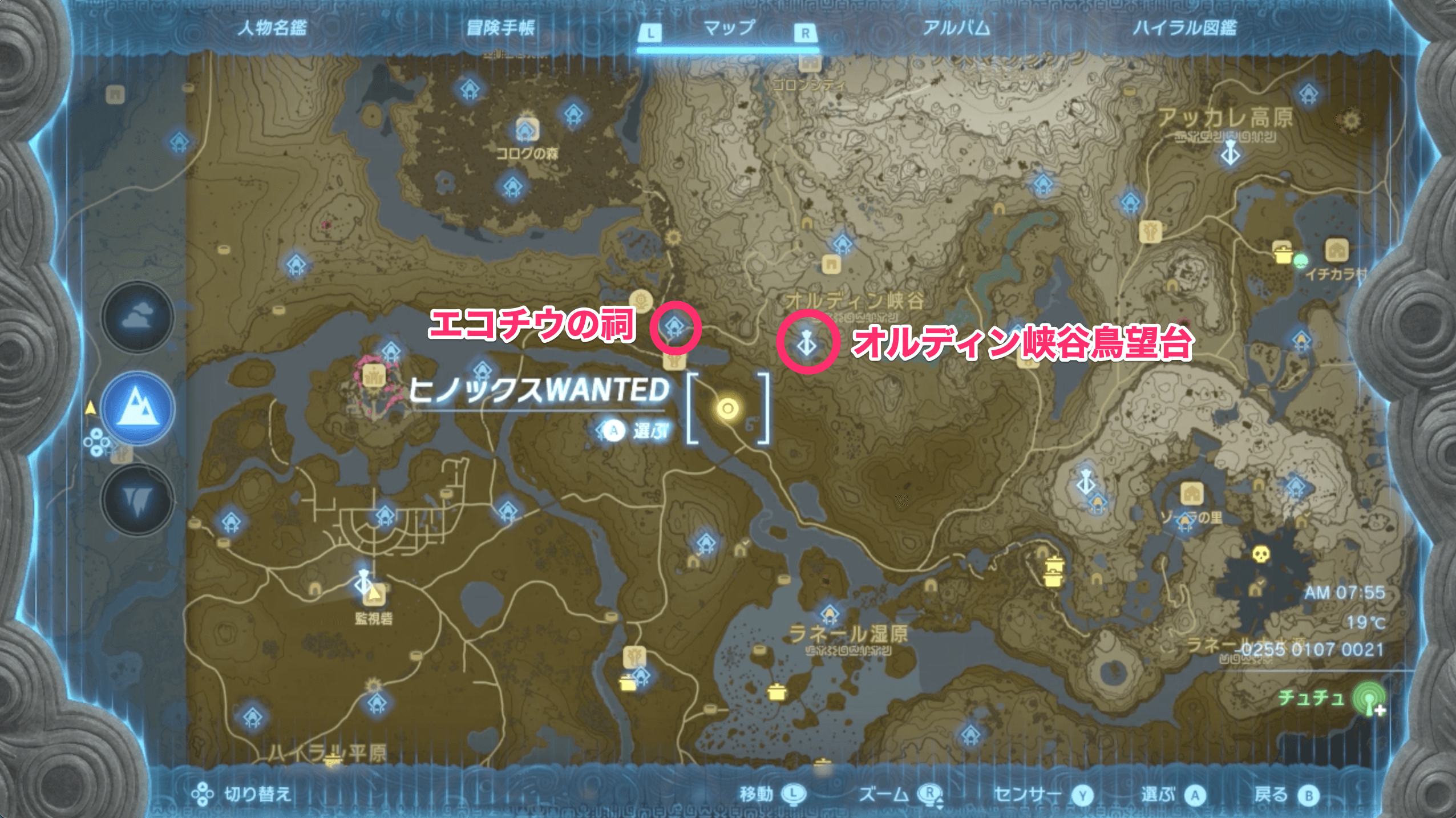 └エコチウの祠かオルディン峡谷鳥望台にワープ |
