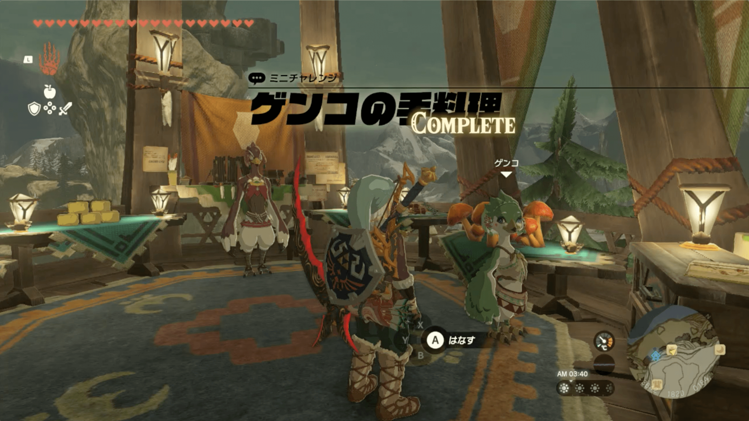 ゼルダの伝説ティアーズオブザキングダム(ティアキン/totk)のチャレンジ「ゲンコの手料理」を掲載。発生条件や場所などについても紹介しています。