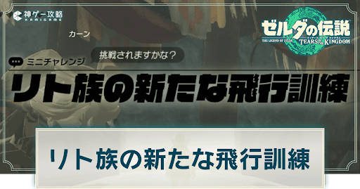 ゼルダの伝説ティアーズオブザキングダム(ティアキン/totk)のチャレンジ「リト族の新たな飛行訓練」を掲載。発生条件や場所などについても紹介しています。